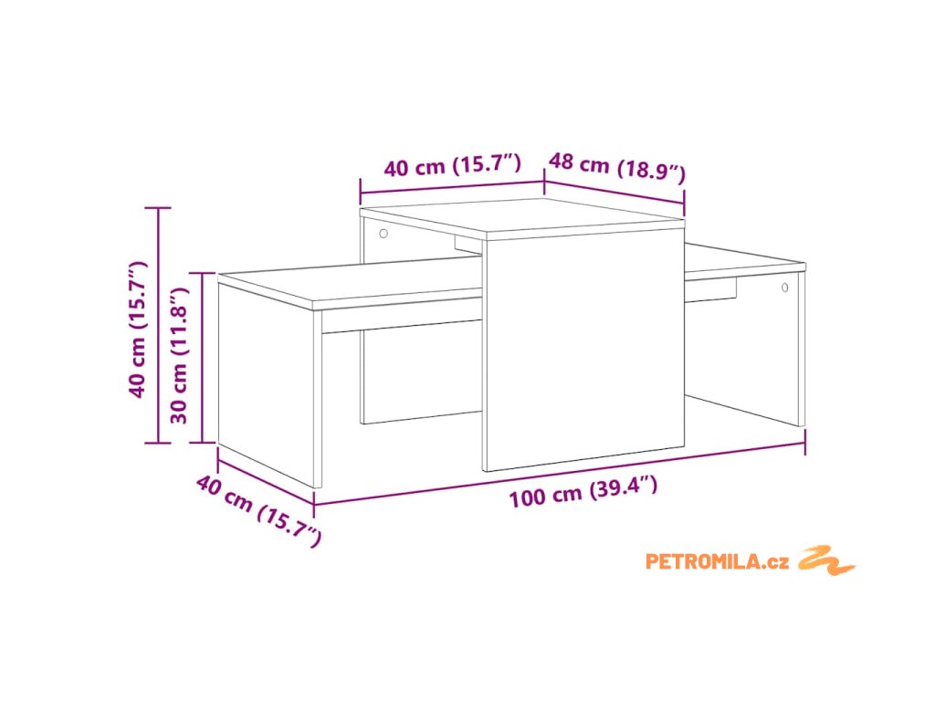 Hnízdové stolky Černý dub 100 x 48 x 40 cm Kompozitní dřevo
