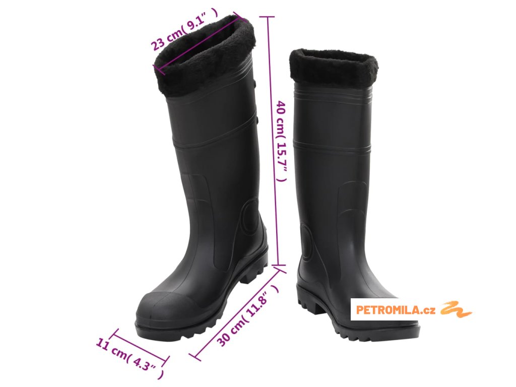 Holínky s vyjímatelnou vložkou černé velikost 44 PVC