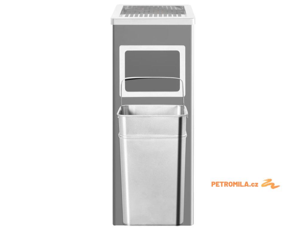 Tento odpadkový koš s popelníkem se vyznačuje elegantním designem z oceli. Tento vysoce kvalitní odpadkový koš s popelníkem má nejen sofistikovaný design, ale zaboduje také svou funkčností. Odpadkový koš má objemnou nádobu na odpadky, a navíc je v horní části vybavený popelníkem, který je vhodný pro použití ve vnitřních i venkovních prostorách, jako např. v hotelích, restauracích, před domem, v kancelářích a dalších veřejných místech.