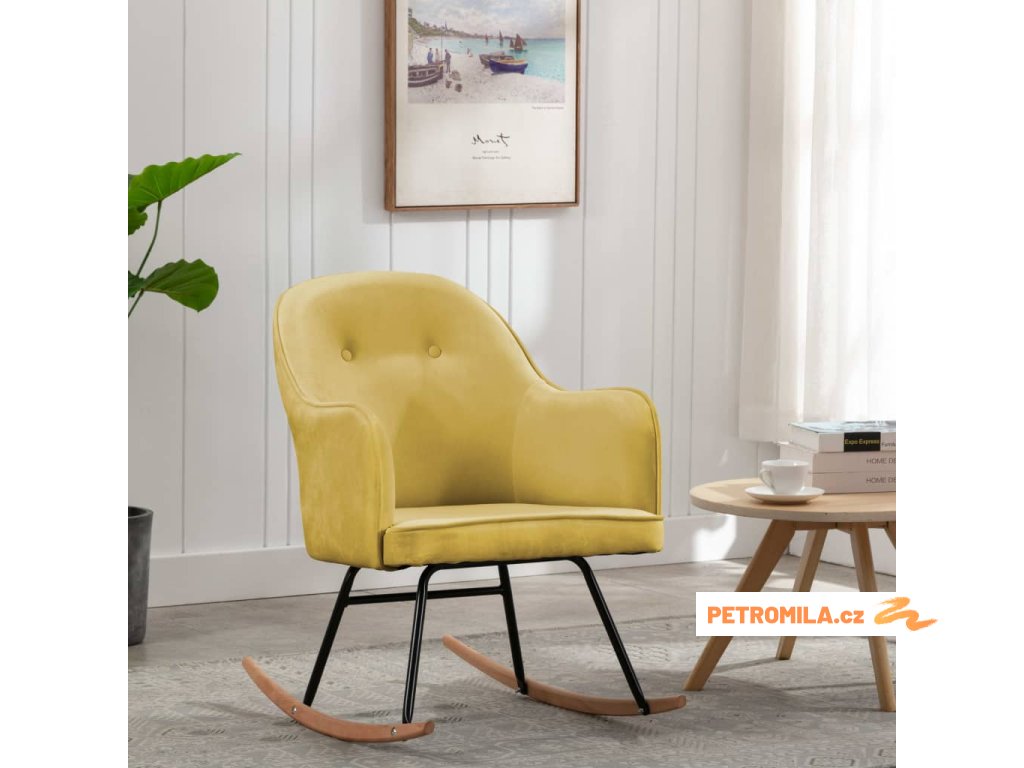 Houpací křeslo hořčicová žlutá samet