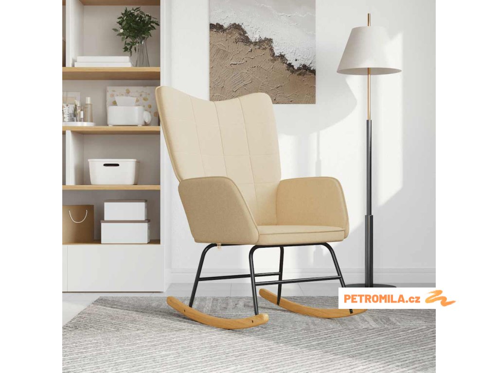 Houpací křeslo krémové textil