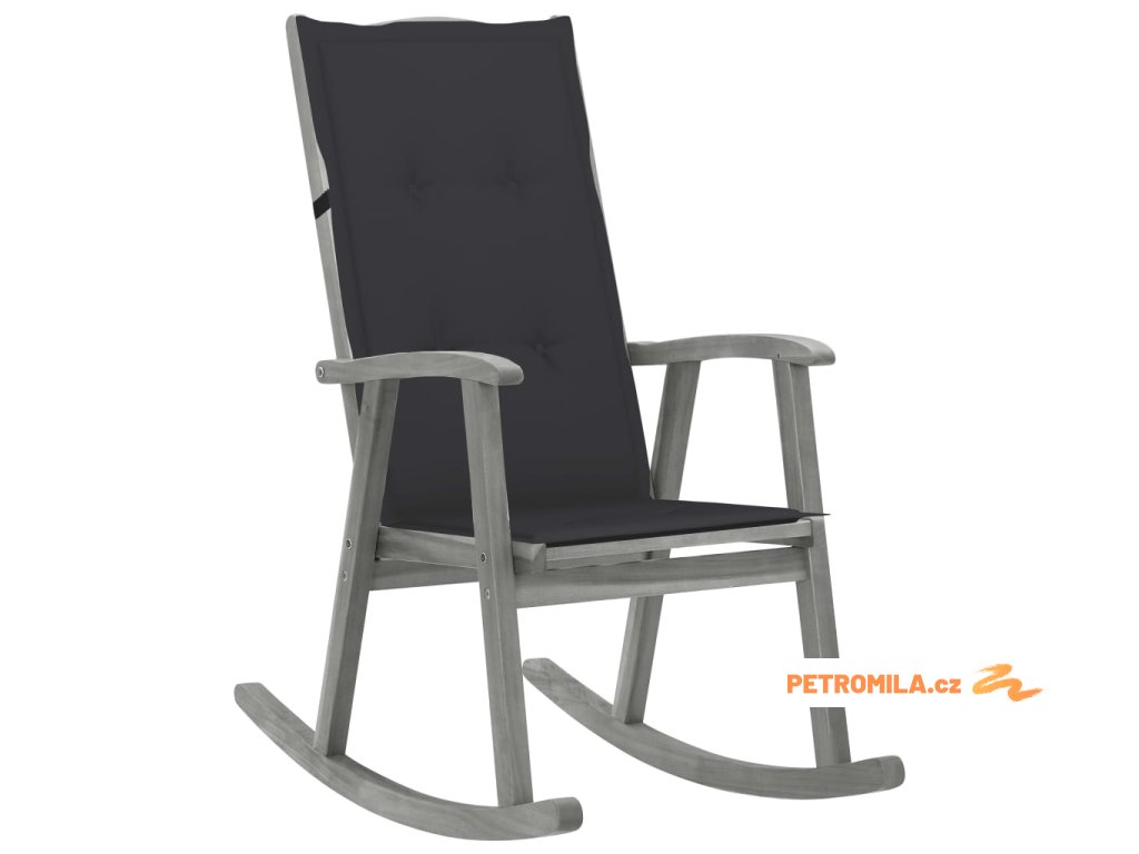 Houpací křeslo s poduškami šedé masivní akáciové dřevo