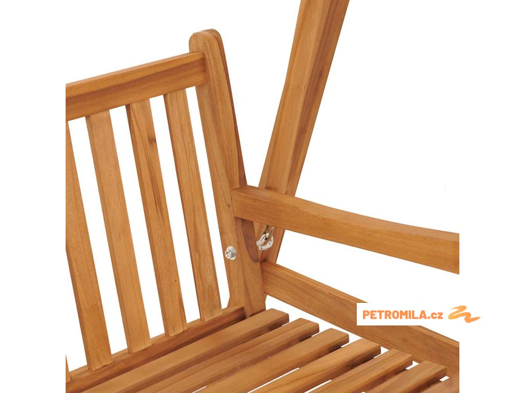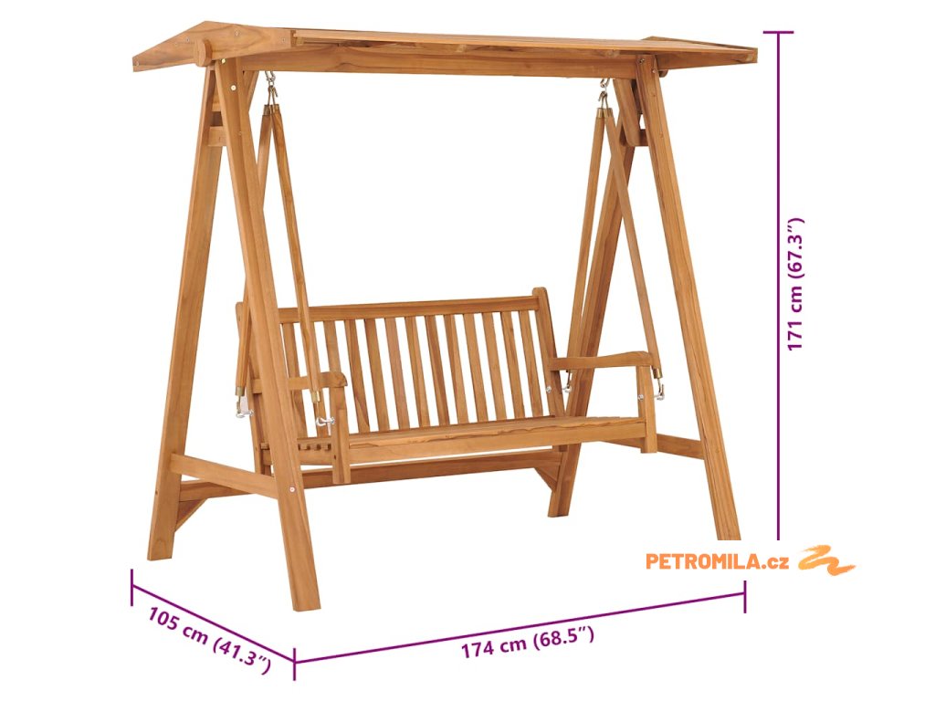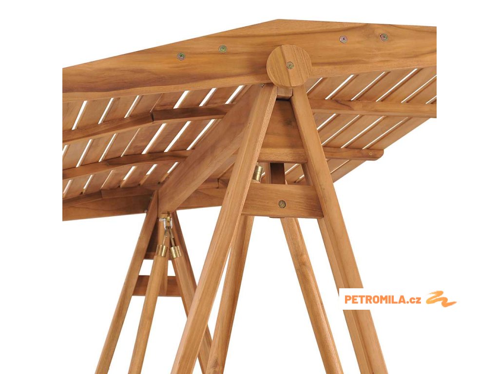 Nábytek je zhotovený z extrémně odolného teakového tvrdého dřeva, které již prošlo procesem smršťování, bylo uměle vysušené a poté jemně a dohladka obroušené. Teakové dřevo je proslulé svou výjimečnou pevností a klimatickou odolností, a proto je zdaleka nejvhodnějším materiálem pro výrobu zahradního nábytku. Jedná se tak o skvělou volbu, pokud si chcete pořídit nábytek, který vám bude dlouho a dobře sloužit. Stříška výborně vzdoruje všem klimatickým vlivům a dá se naklonit do různých úhlů, abyste mohli odpočívat hezky ve stínu. Užijte si příjemný vánek při houpání na této lavičce.