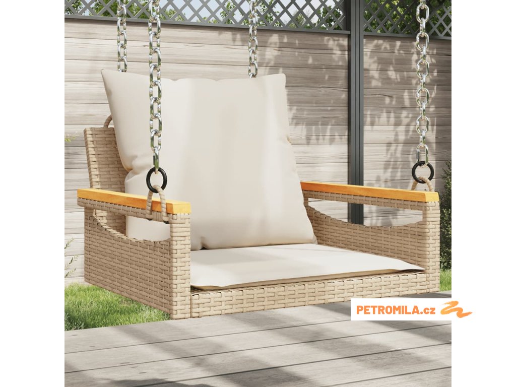 Houpací lavice s poduškami béžová 63 x 62 x 40 cm polyratan