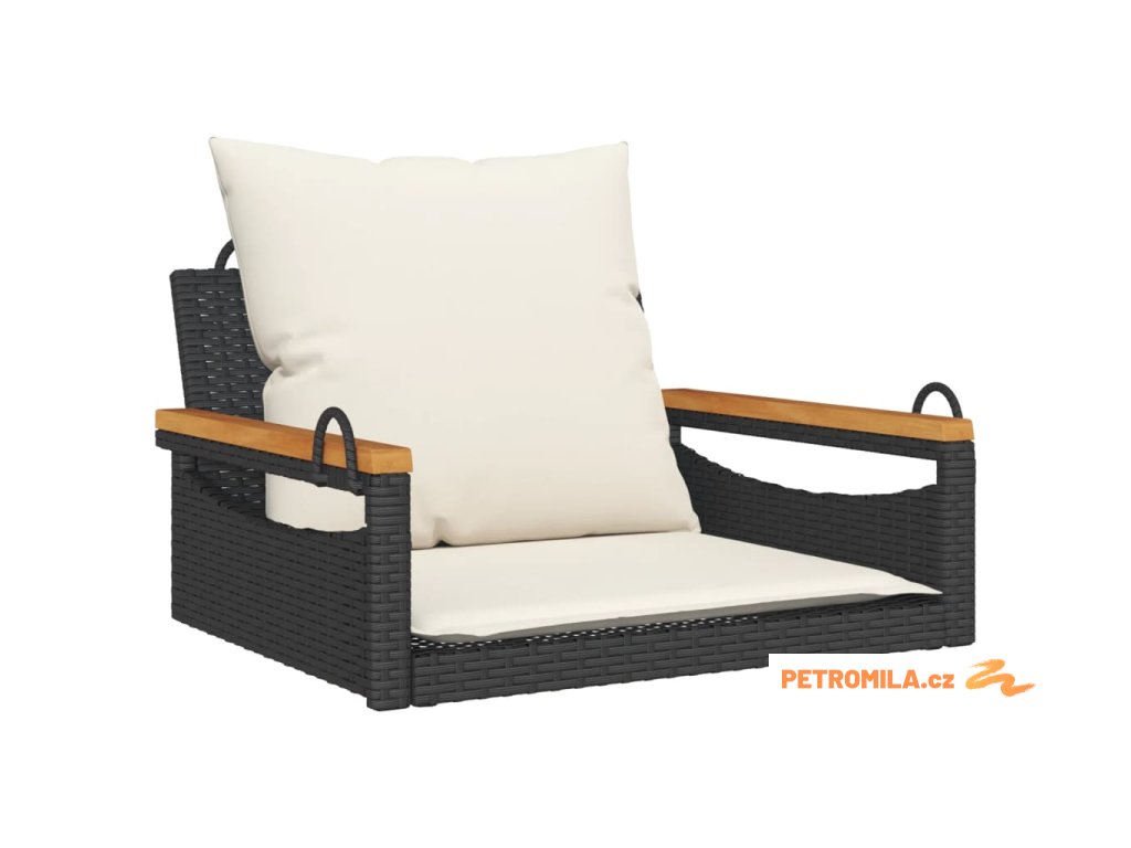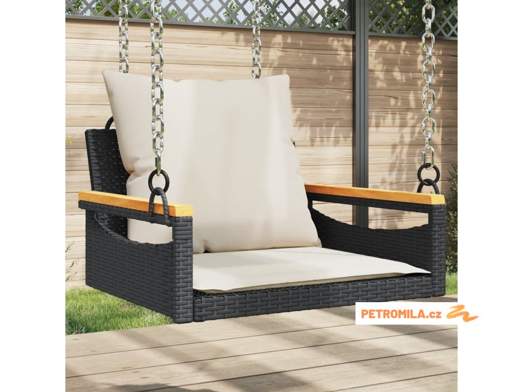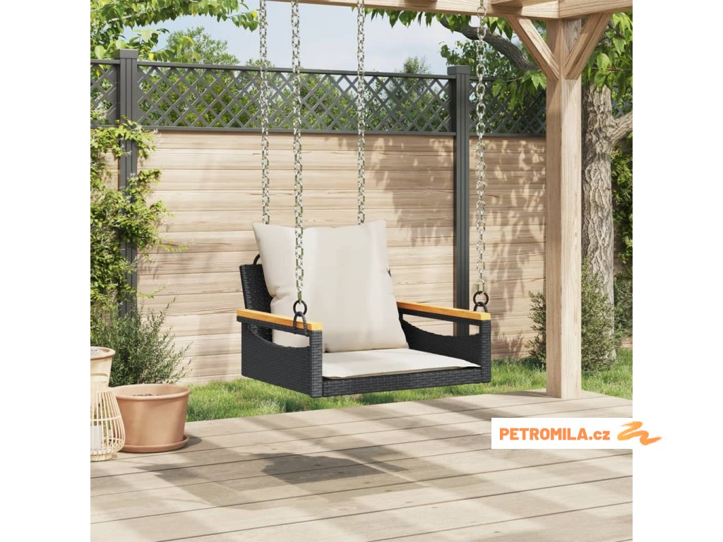 Houpací lavice s poduškami černá 63 x 62 x 40 cm polyratan