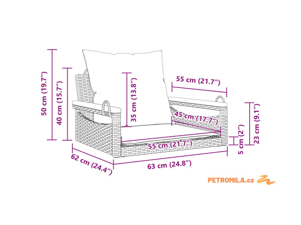 - Rozměry sedáku: 55 x 45 cm (Š x H)