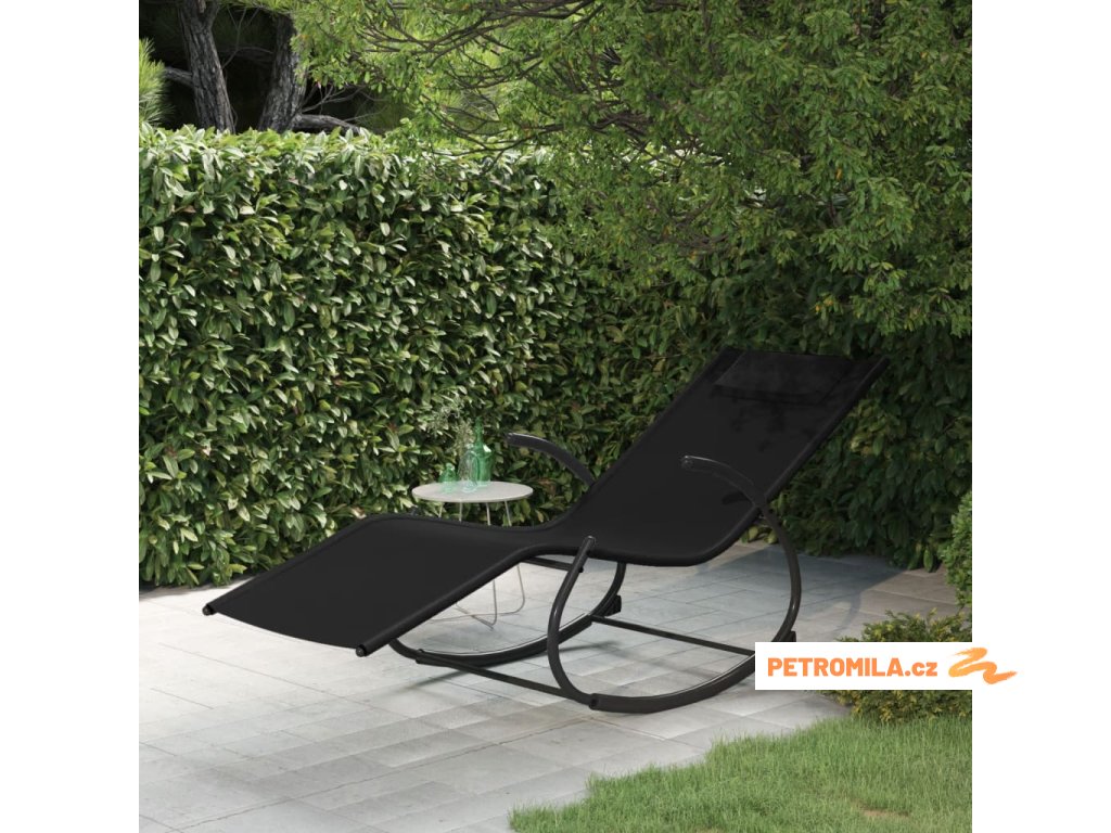 Houpací lehátko černé ocel a textilen