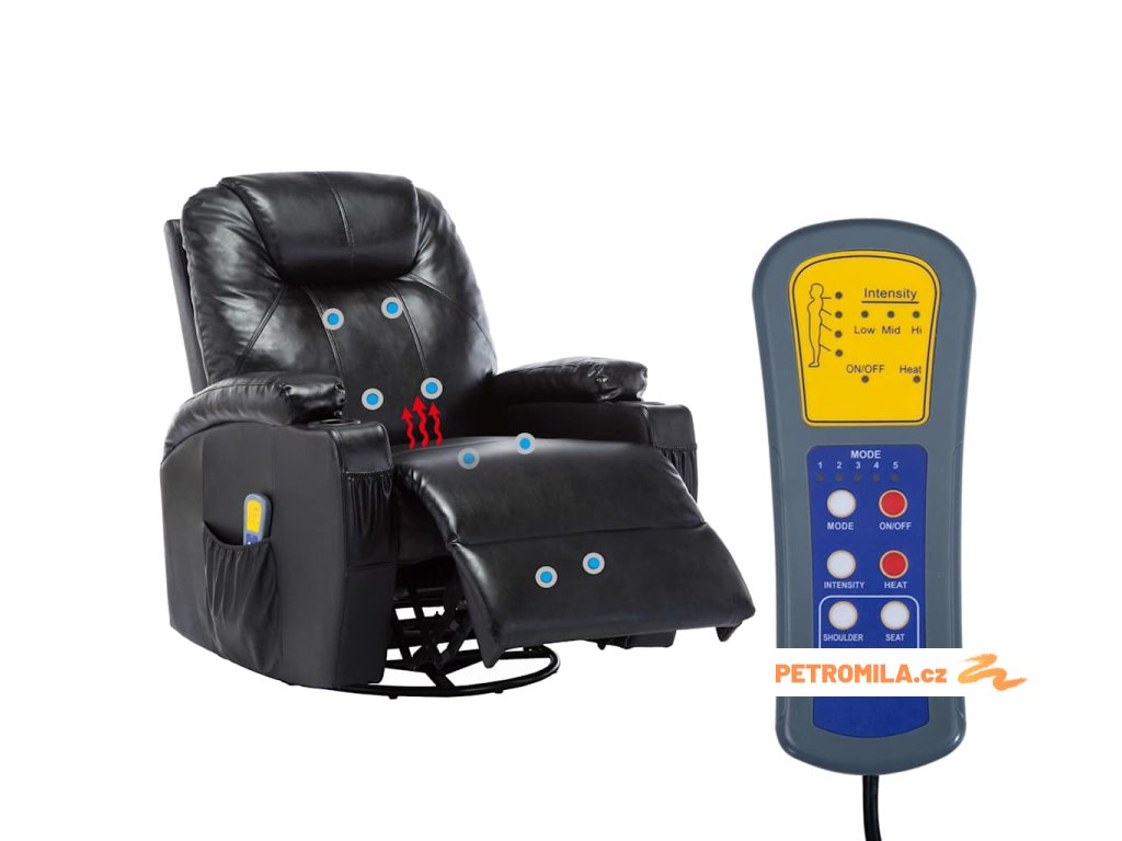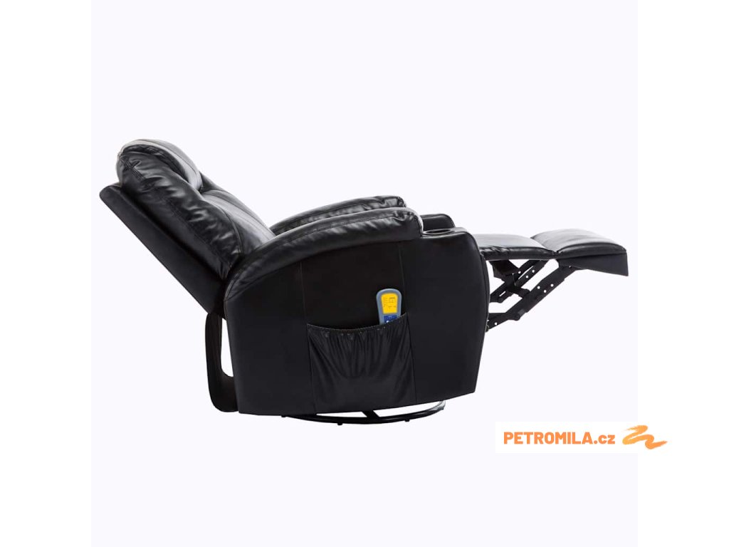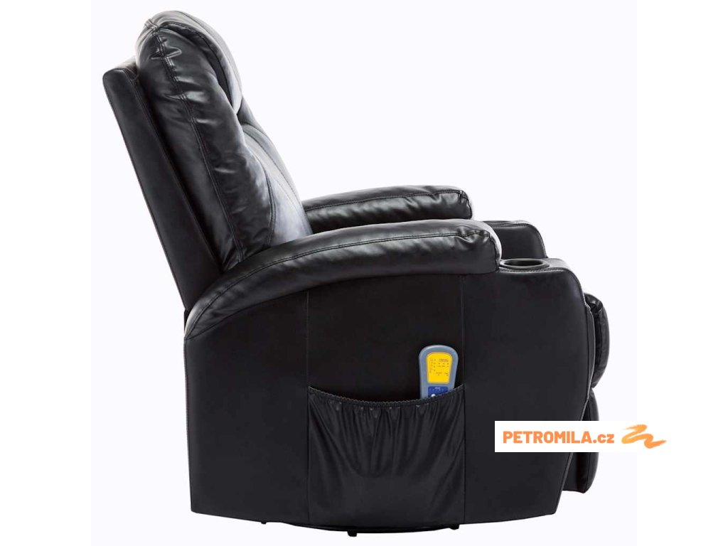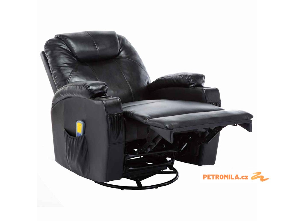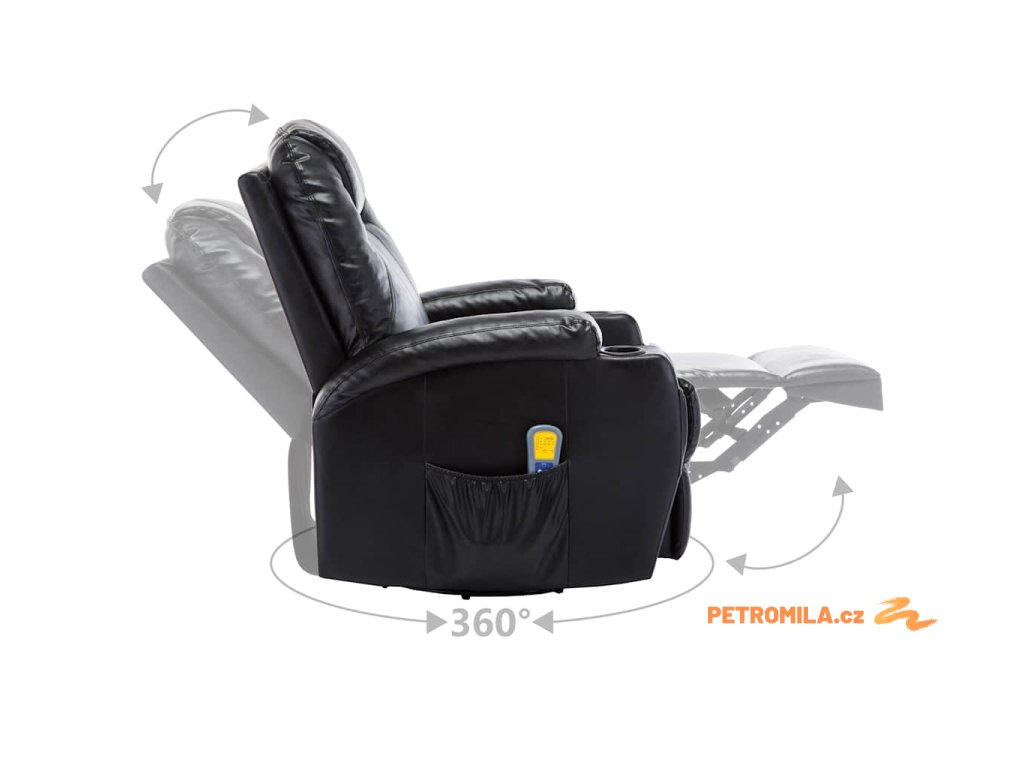 Čalouněné prémiovou umělou kůží spolu se silně polstrovaným sedadlem a opěradlem, toto otočné polohovací křeslo je navrženo tak, aby vám poskytlo maximální pohodlí. TV křeslo má otočný systém, takže máte 360° přehled o místnosti. Houpací masážní křeslo má 8 masážních uzlů, které uklidňují celé tělo. Díky funkci vytápění vydává polohovací křeslo příjemné teplo, což pomáhá zmírnit napětí. Opěradlo a opěrku nohou si můžete nastavit do různých úhlů podle vašich potřeb. Přiložené dálkové ovládání lze uložit do boční kapsy masážního křesla.