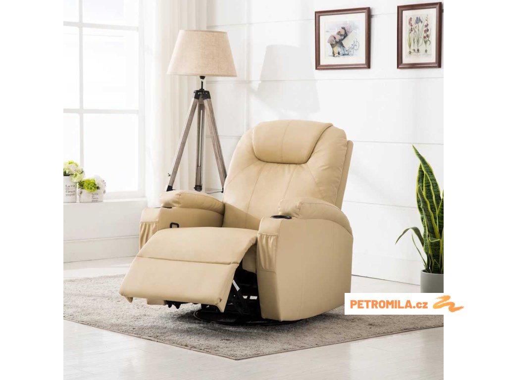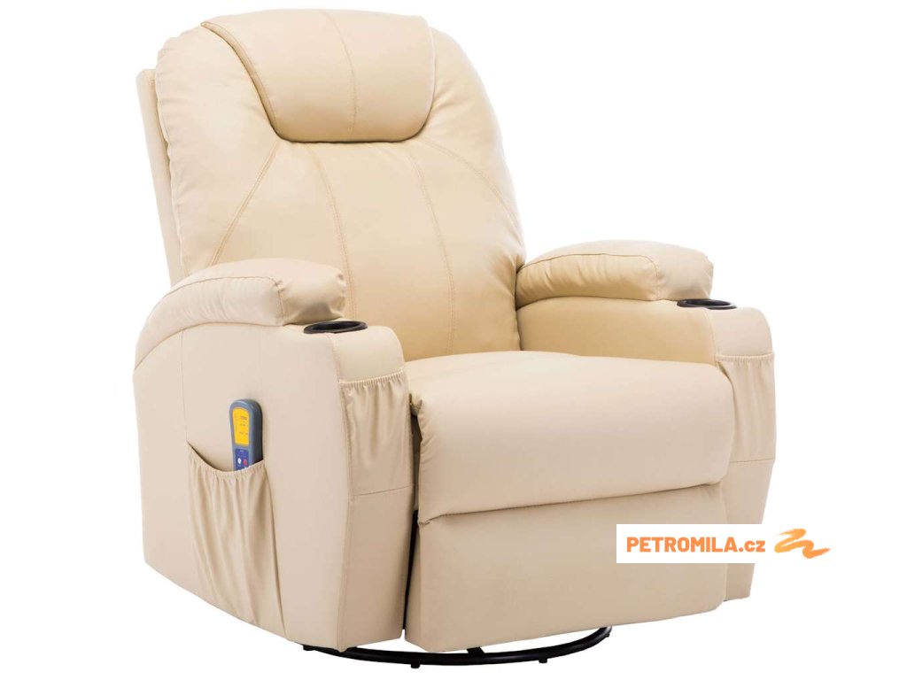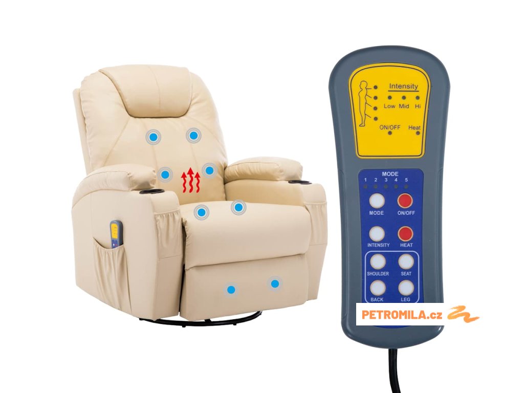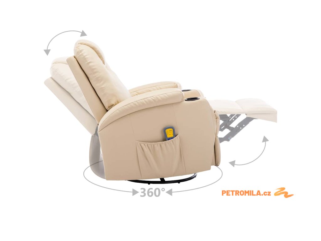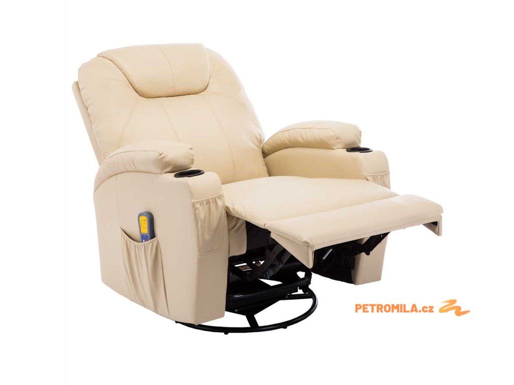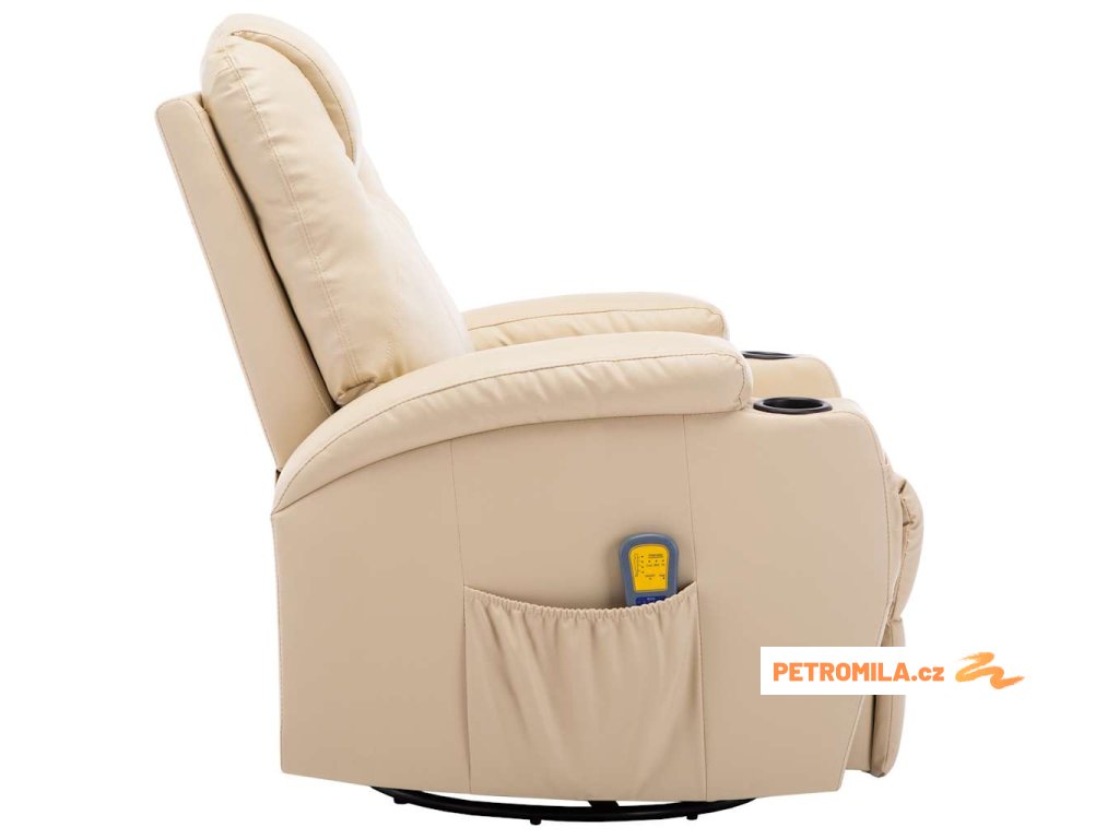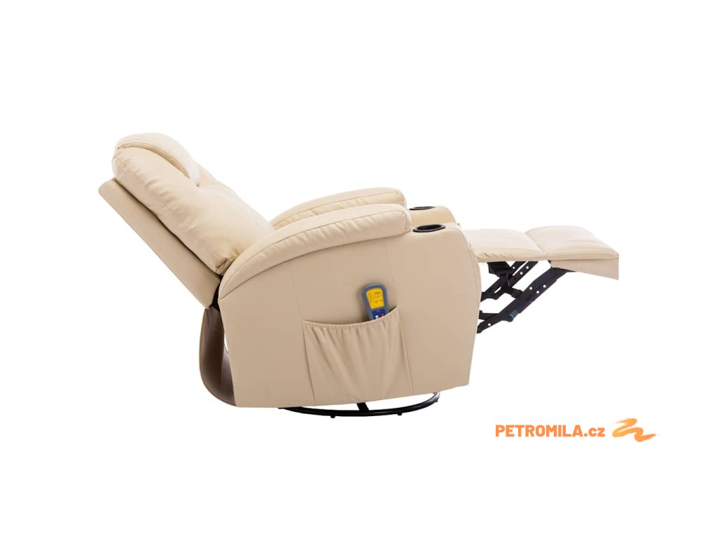 Čalouněné prémiovou umělou kůží spolu se silně polstrovaným sedadlem a opěradlem, toto otočné polohovací křeslo je navrženo tak, aby vám poskytlo maximální pohodlí. TV křeslo má otočný systém, takže máte 360° přehled o místnosti. Houpací masážní křeslo má 8 masážních uzlů, které uklidňují celé tělo. Díky funkci vytápění vydává polohovací křeslo příjemné teplo, což pomáhá zmírnit napětí. Opěradlo a opěrku nohou si můžete nastavit do různých úhlů podle vašich potřeb. Přiložené dálkové ovládání lze uložit do boční kapsy masážního křesla.