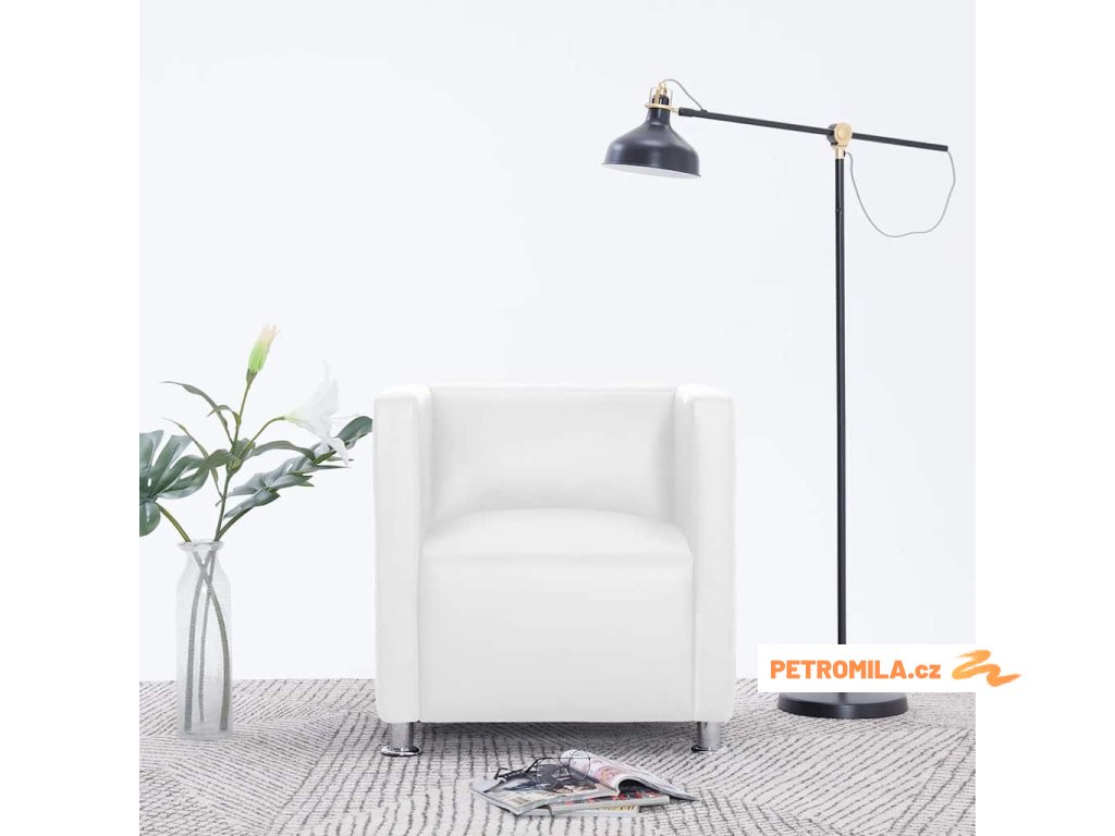 Hranaté křeslo bílé umělá kůže