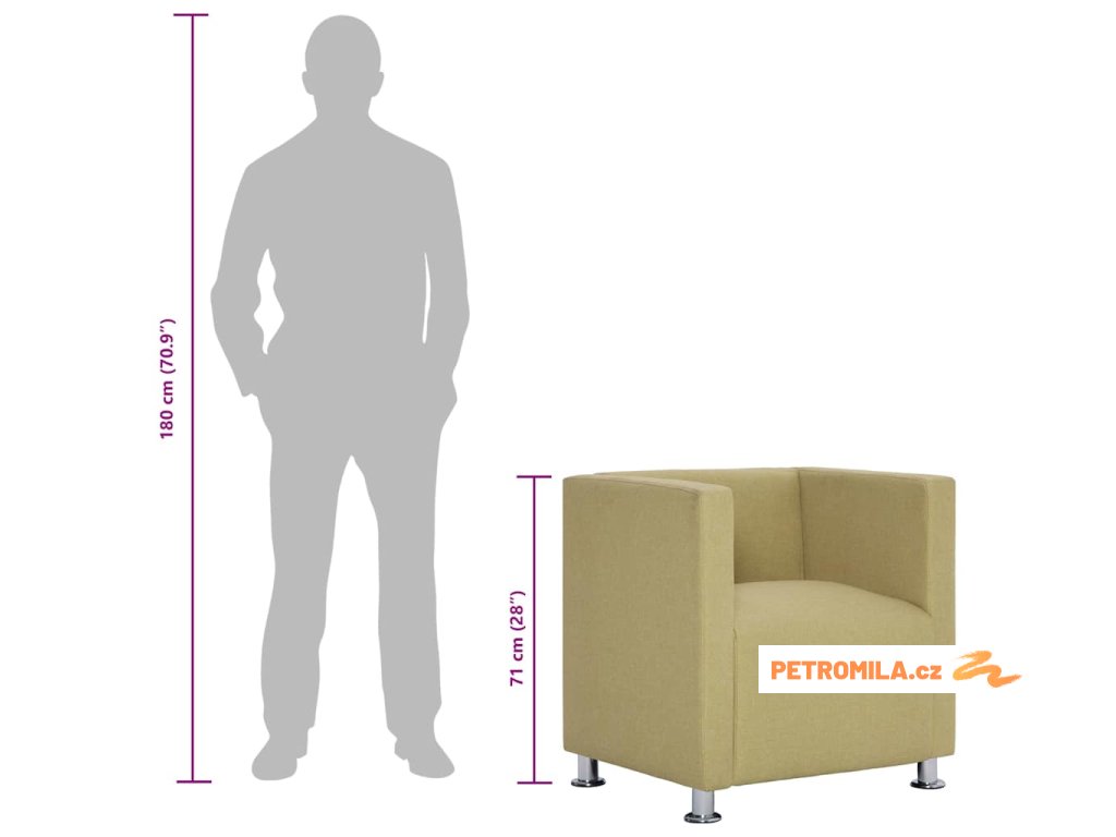 - Materiál: polyesterové čalounění + dřevěný rám + chromové nohy