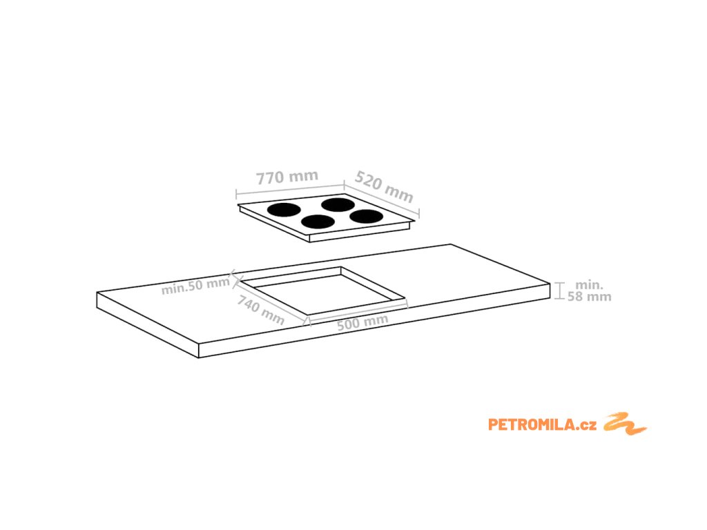 - Rozměry výřezu: 740 x 500 mm (Š x H)