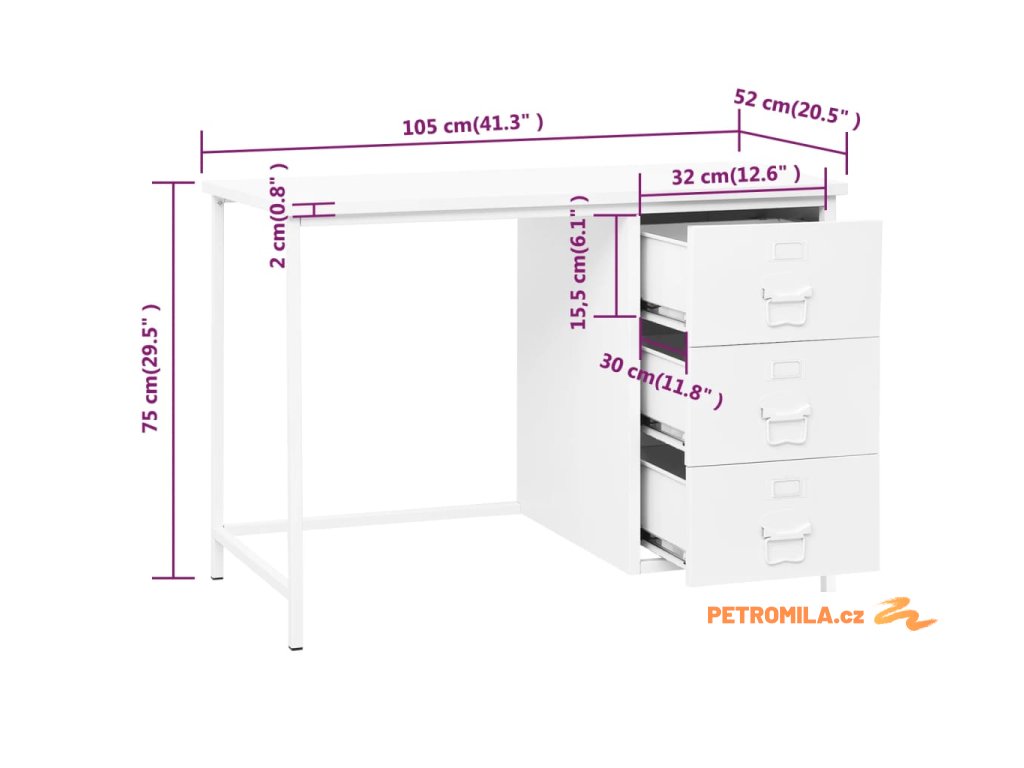 Industriální stůl se zásuvkami bílý 105 x 52 x 75 cm ocel