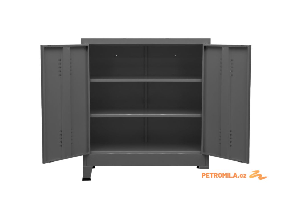 V úložné skříni se 2 policemi a štítky na dvířkách si snadno a přehledně uspořádáte nejrůznější složky a dokumenty dle různých kategorií. Ikonický design skříně s industriálním šarmem se hodí do každé kanceláře či pracovny. Ocelové nožičky s plastovými krytkami zabraňují poškrábání podlahy. Tato skříň je vyrobena z oceli, proto má dlouhou životnost a snadno se čistí. Všechny dvířka jsou také vybavena jmenovkami, takže si věci můžete přehledně uspořádat, a větracími otvory, které ji dodávají industriální vzhled.