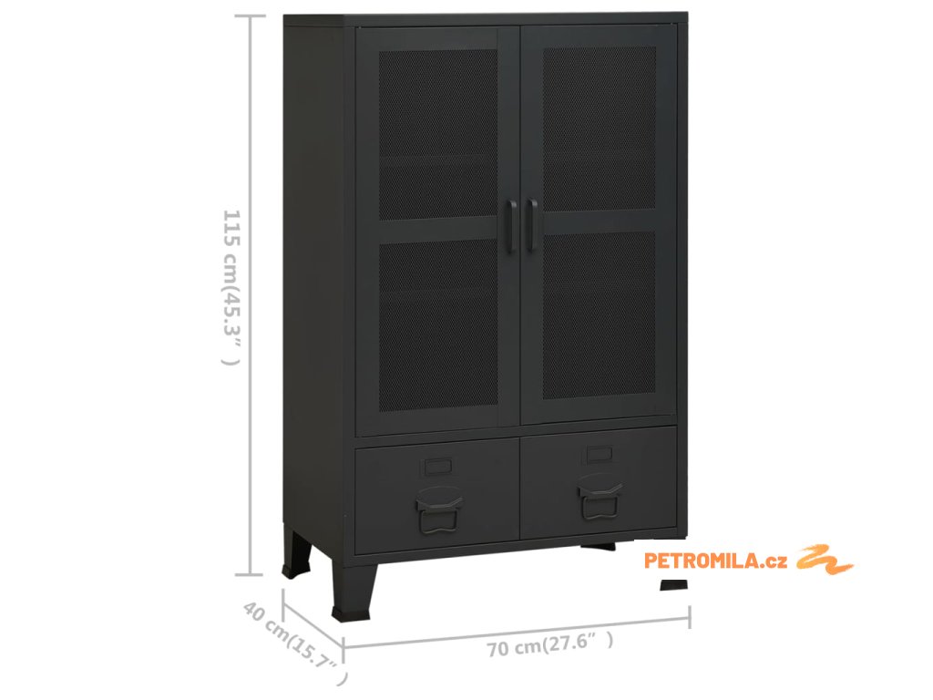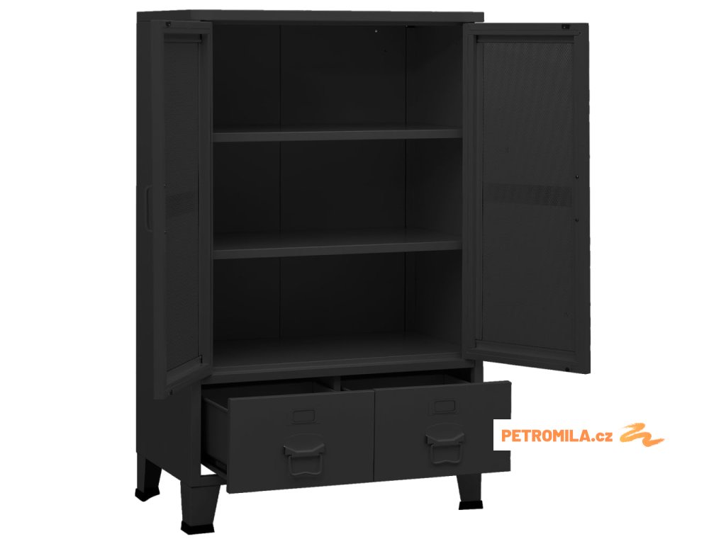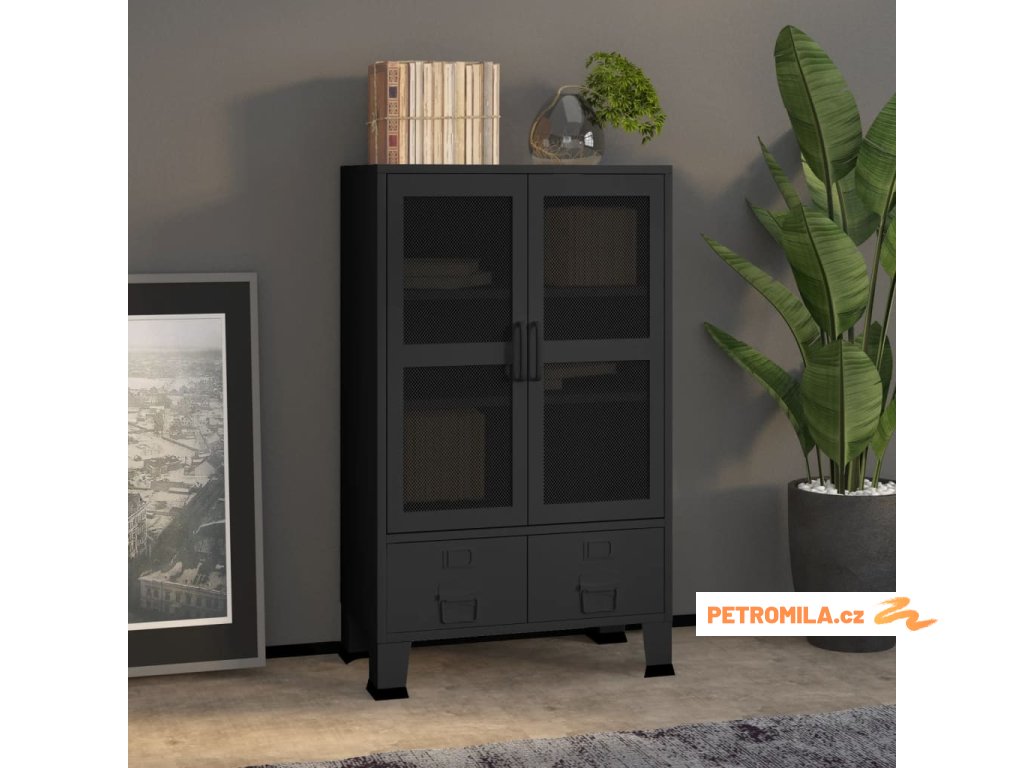 Tento příborník je vyroben z kovu, takže je pevný a stabilní. Má 2 police a 2 zásuvky, které poskytují dostatek úložného prostoru pro vaše DVD, multimediální zařízení, knihy a drobné nezbytné předměty. Pomocí držáků na jmenovky na zásuvkách můžete přehledně třídit vaše položky. Zásuvky s dvoudílnými pojezdy s kuličkovými ložisky zajišťují hladké otevírání a zavírání i při zvýšené zátěži. 2 mřížkovaná dvířka navíc dodají vašemu obývacímu pokoji nebo ložnici městský industriální nádech. Skříň se snadno čistí vlhkým hadříkem.