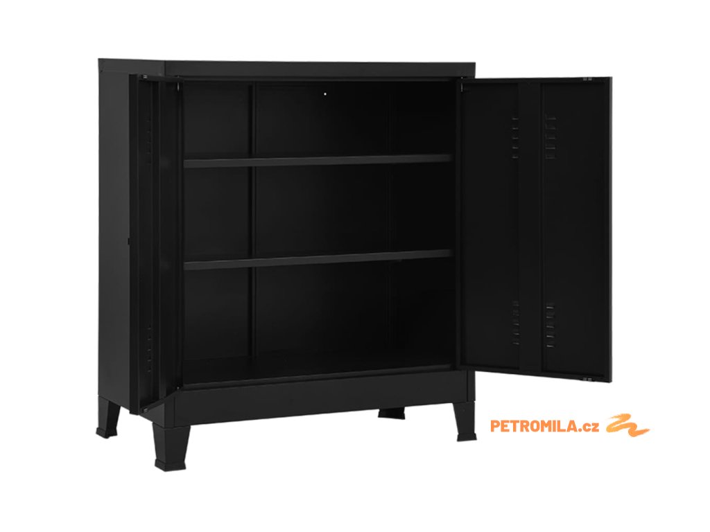 V úložné skříni se 2 policemi a štítky na dvířkách si snadno a přehledně uspořádáte nejrůznější složky a dokumenty dle různých kategorií. Ikonický design skříně s industriálním šarmem se hodí do každé kanceláře či pracovny. Ocelové nožičky s plastovými krytkami zabraňují poškrábání podlahy. Tato skříň je vyrobena z oceli, proto má dlouhou životnost a snadno se čistí. Všechny dvířka jsou také vybavena jmenovkami, takže si věci můžete přehledně uspořádat, a větracími otvory, které ji dodávají industriální vzhled.