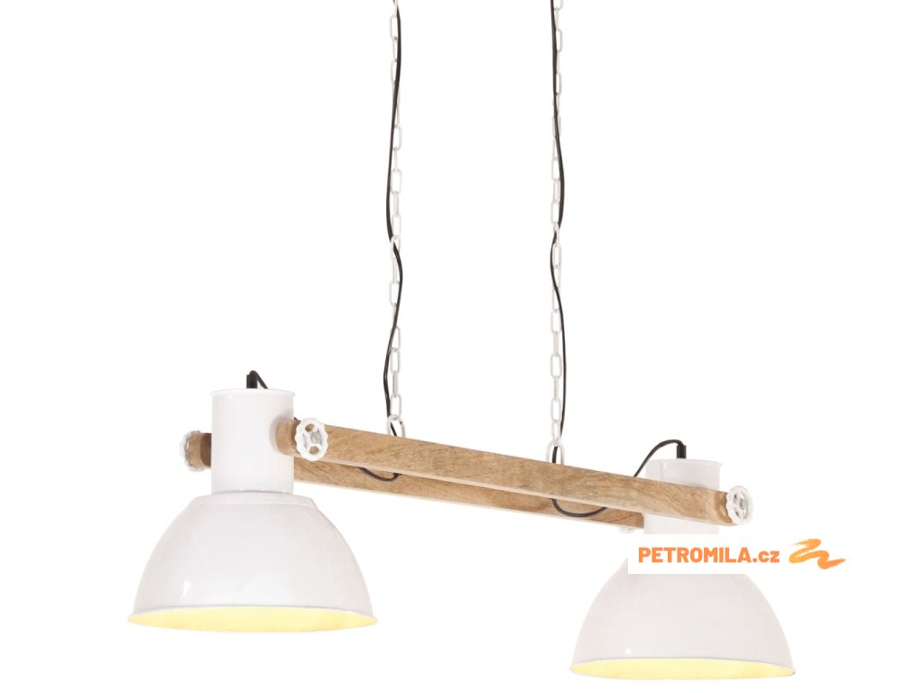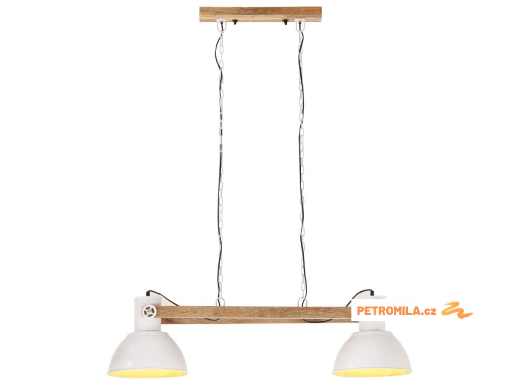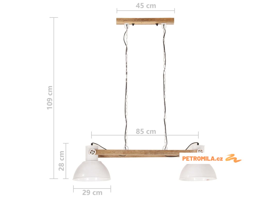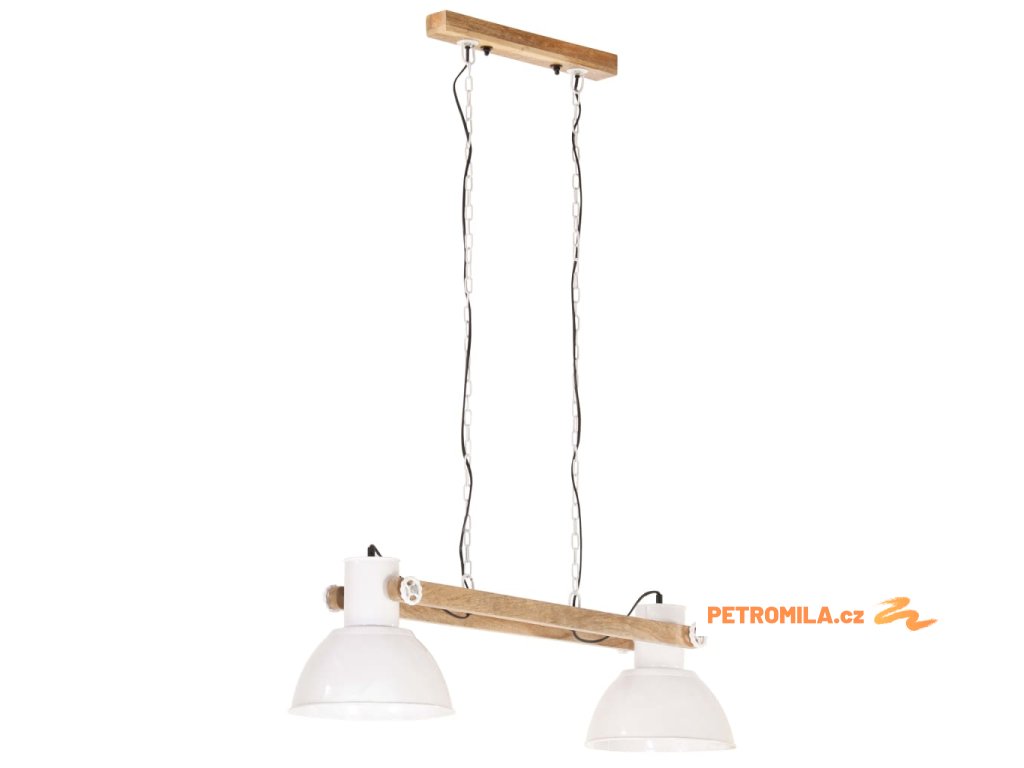 Železná stínidla s bílým povrchem doplňuje starovenkovský hnědý odstín masivního mangovníkového dřeva, takže se skvěle hodí do každého venkovského či industriálního interiéru. Stropní světlo má 2 stínidla, do kterých je třeba namontovat žárovky s paticí E27 o maximálním výkonu 25 wattů. K instalaci si můžete vybírat ze žárovek E27 různých barev, abyste si doma navodili ideální atmosféru klidu a pohody.