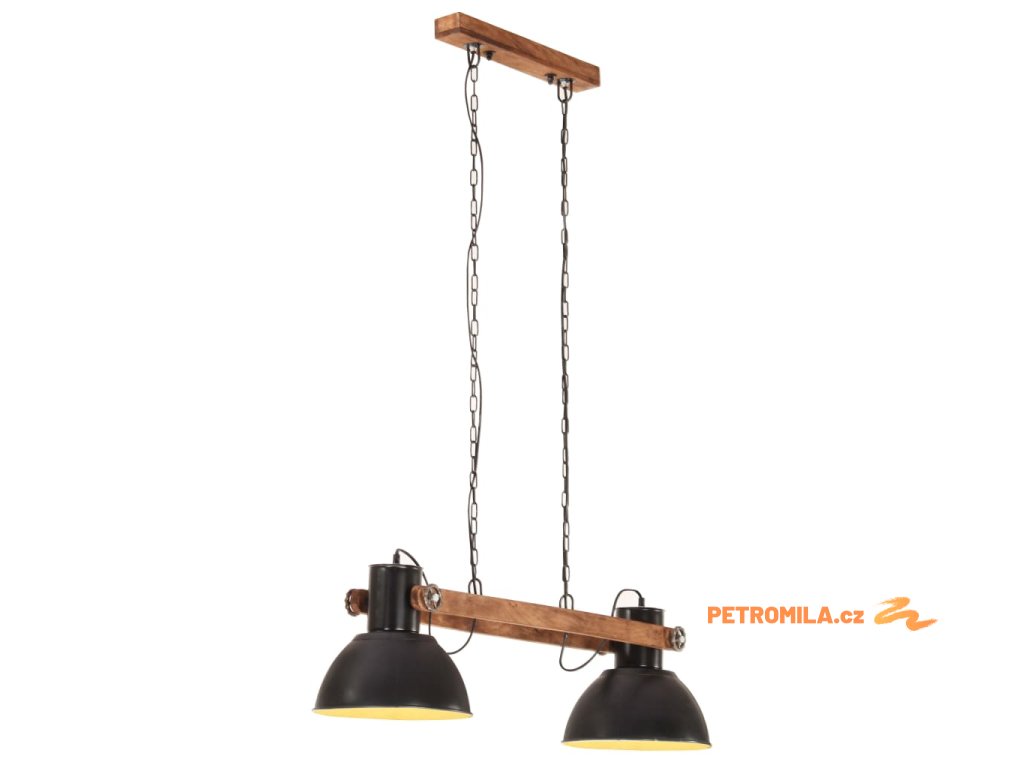 Železná stínidla s černým povrchem doplňuje starovenkovský hnědý odstín masivního mangovníkového dřeva, takže se skvěle hodí do každého venkovského či industriálního interiéru. Stropní světlo má 2 stínidla, do kterých je třeba namontovat žárovky s paticí E27 o maximálním výkonu 25 wattů. K instalaci si můžete vybírat ze žárovek E27 různých barev, abyste si doma navodili ideální atmosféru klidu a pohody.