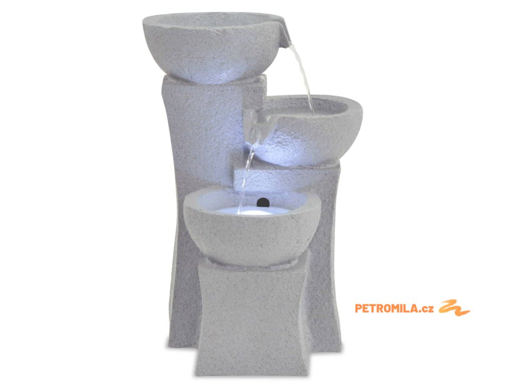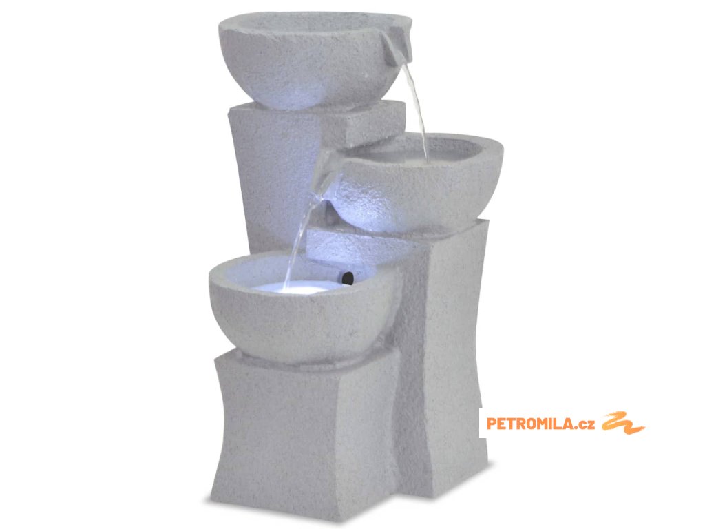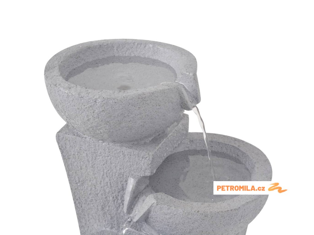 Tato fontánka je vyrobena z polyresinu. Její kaskády jsou osvětleny LED světly, což vytváří ohromující efekt, a to zejména za tmy. Tryská z ní hned několik proudů vody. Jejich zvuk vytváří klidnou, meditativní atmosféru, která je ideální pro relaxaci. Součástí balení je i kvalitní pumpa, díky které je fontána bezpečná a správně funguje.