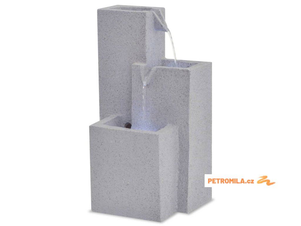 Tato fontánka je vyrobena z polyresinu. Její kaskády jsou osvětleny LED světly, což vytváří ohromující efekt, a to zejména za tmy. Tryská z ní hned několik proudů vody. Jejich zvuk vytváří klidnou, meditativní atmosféru, která je ideální pro relaxaci. Součástí balení je i kvalitní pumpa, díky které je fontána bezpečná a správně funguje.