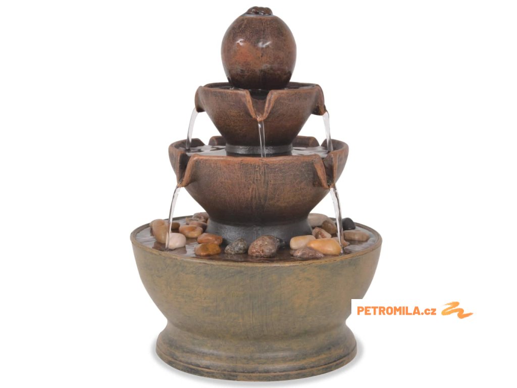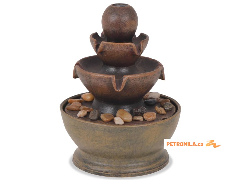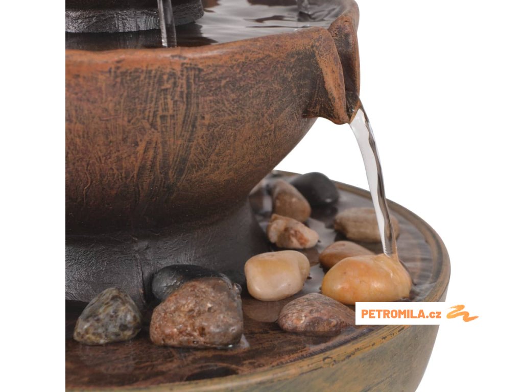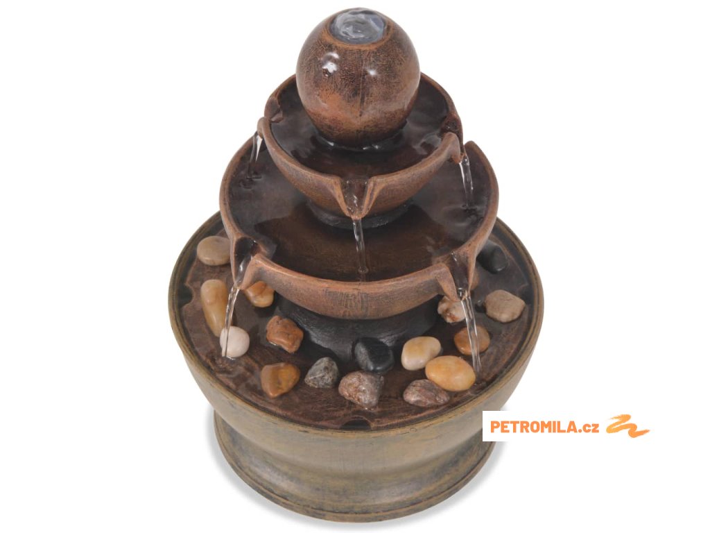 Z fontánky tryská hned několik proudů vody. Jejich zvuk vytváří klidnou, meditativní atmosféru, která je ideální pro relaxaci. Součástí balení je i kvalitní pumpa, díky které je fontána bezpečná a správně funguje.