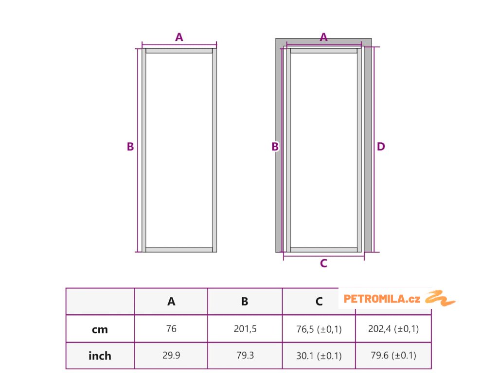 - Rozměry: 76 x 201,5 cm (Š x V)