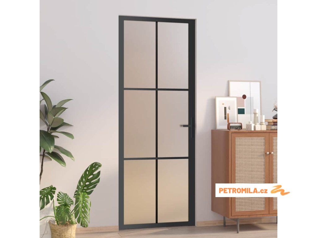 Interiérové dveře 76 x 201,5 cm černé matné sklo a hliník