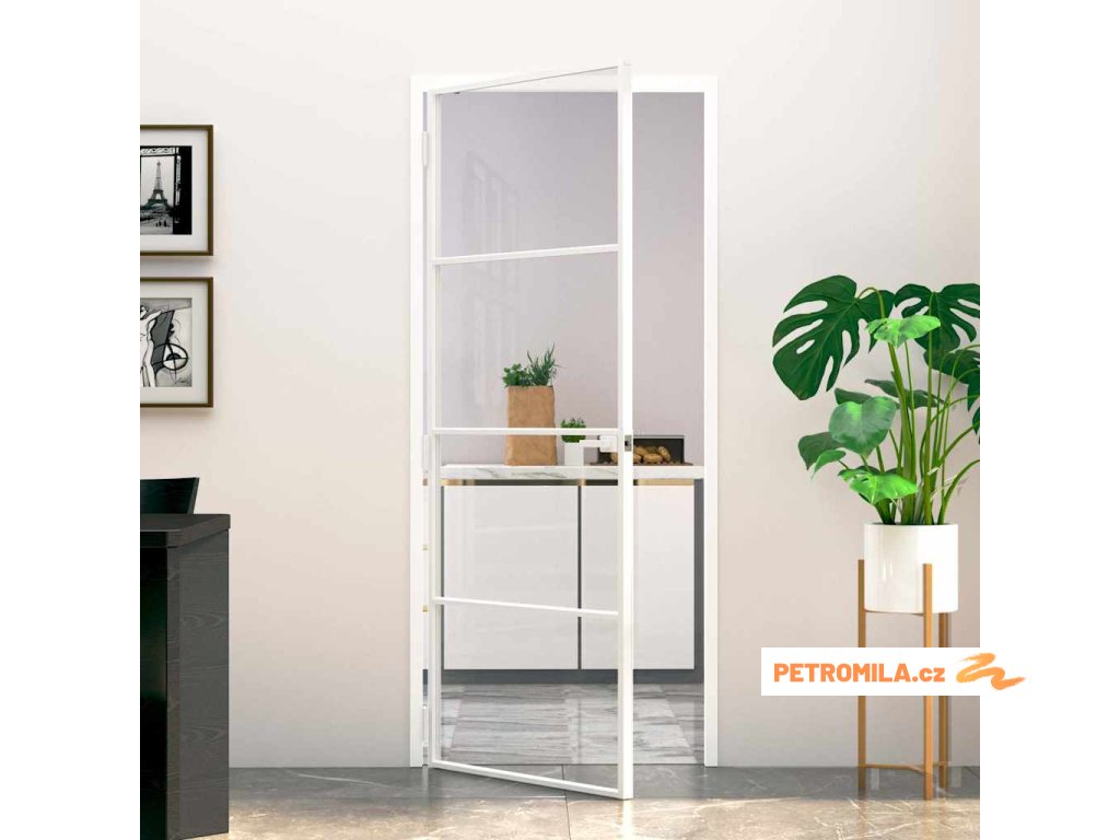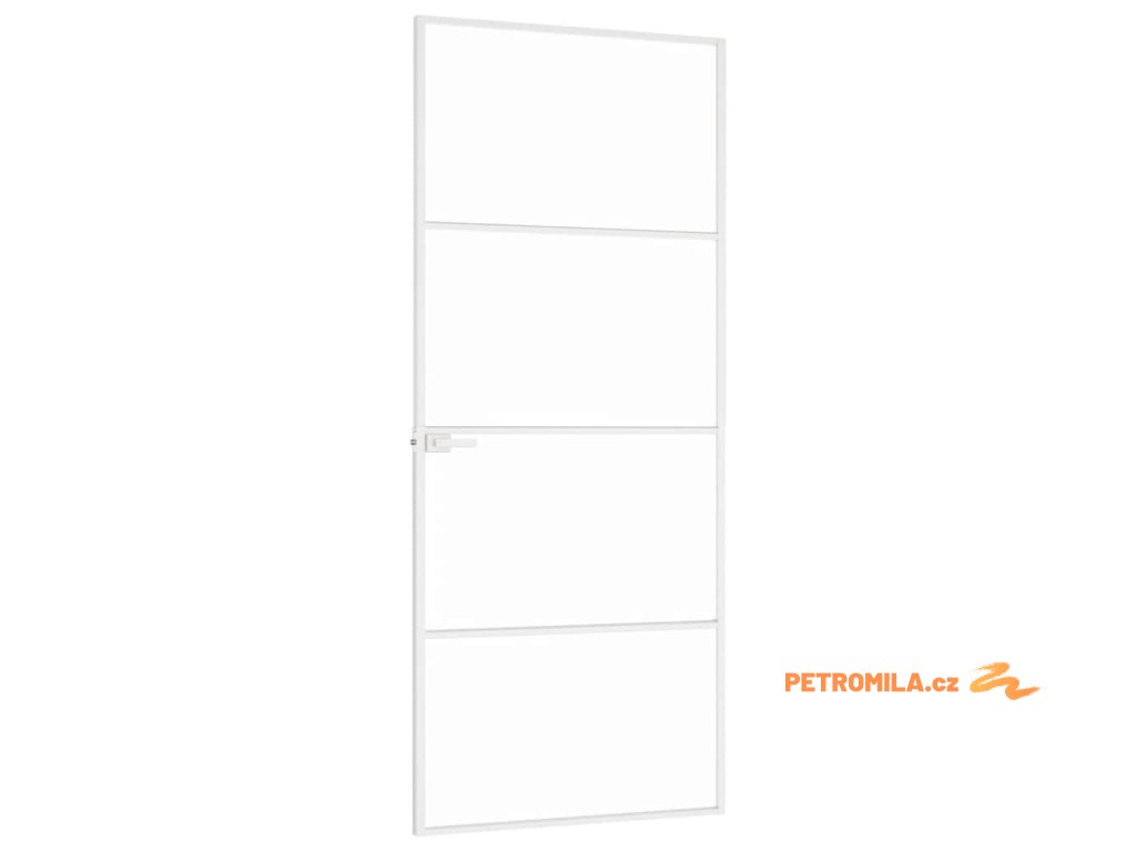 Interiérové dveře bílé 83x201,5 cm tvrzené sklo a hliník úzké