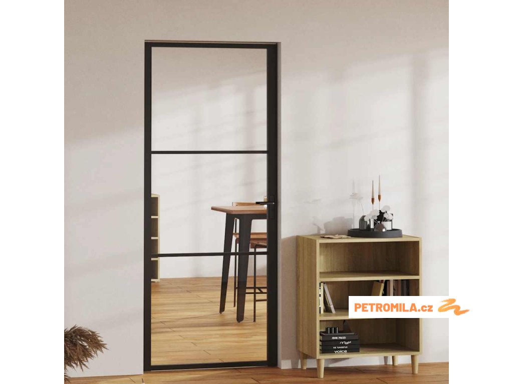 Interiérové dveře úzké černé 102,5x201,5 cm tvrzené sklo hliník