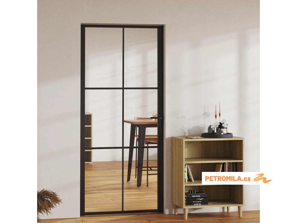 Interiérové dveře úzké černé 102,5x201,5 cm tvrzené sklo hliník