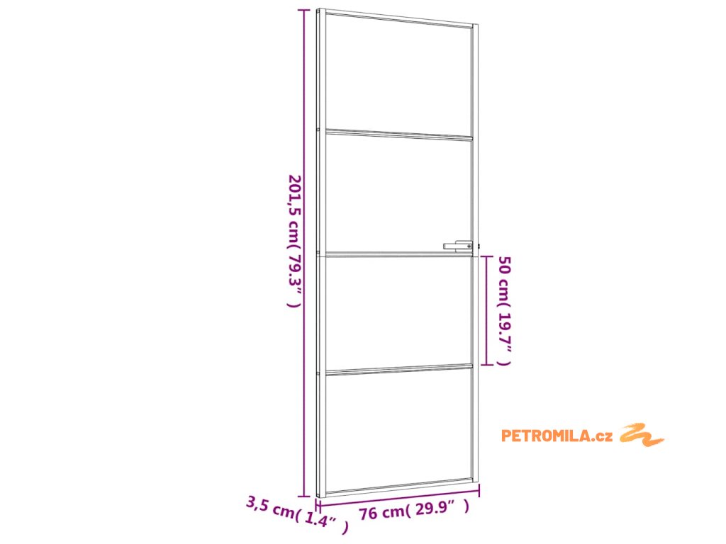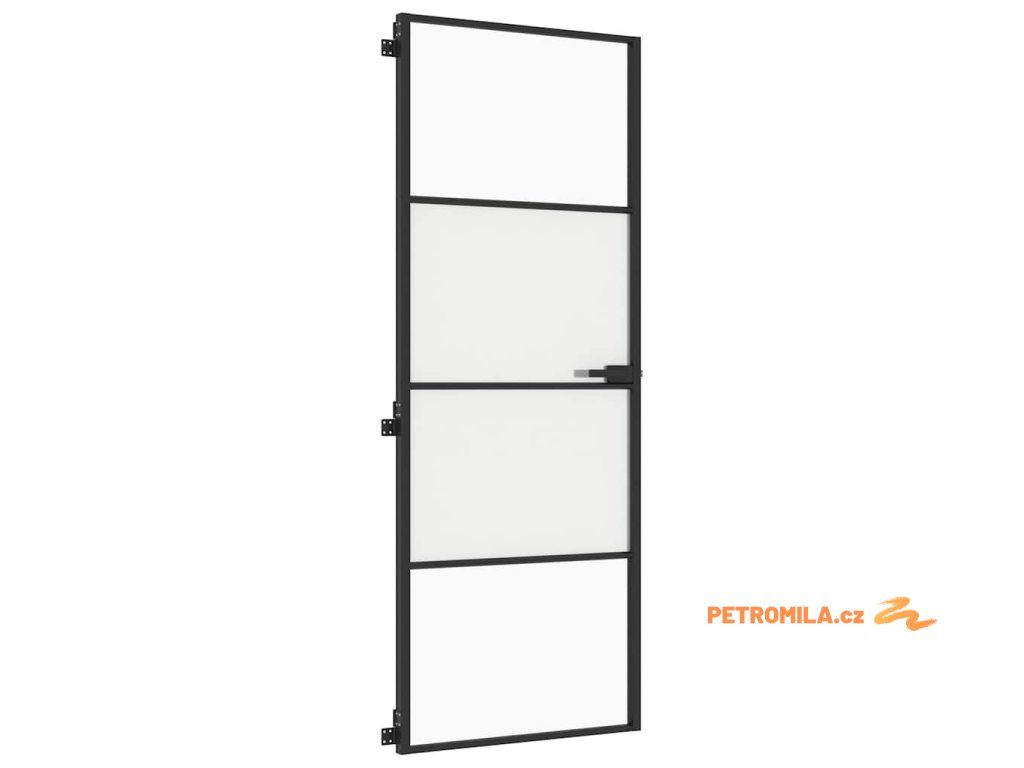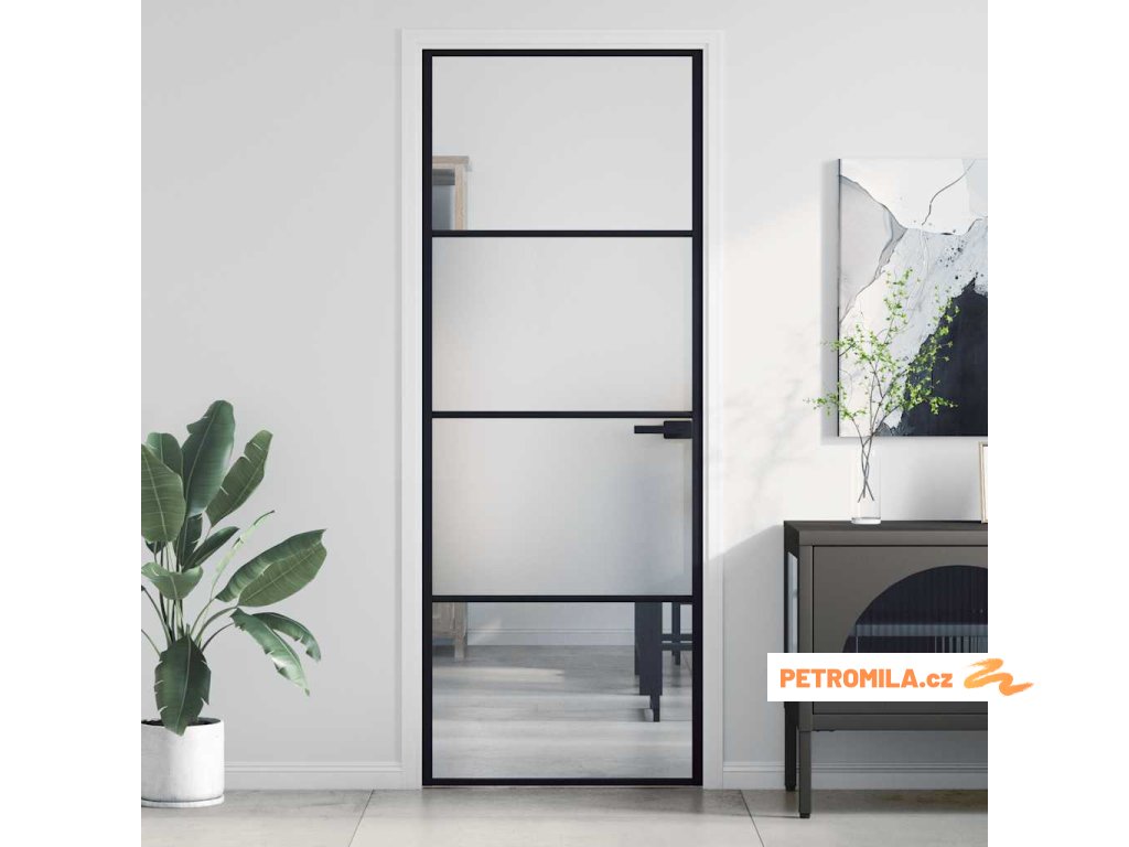 Interiérové dveře úzké černé 76x201,5 cm tvrzené sklo a hliník