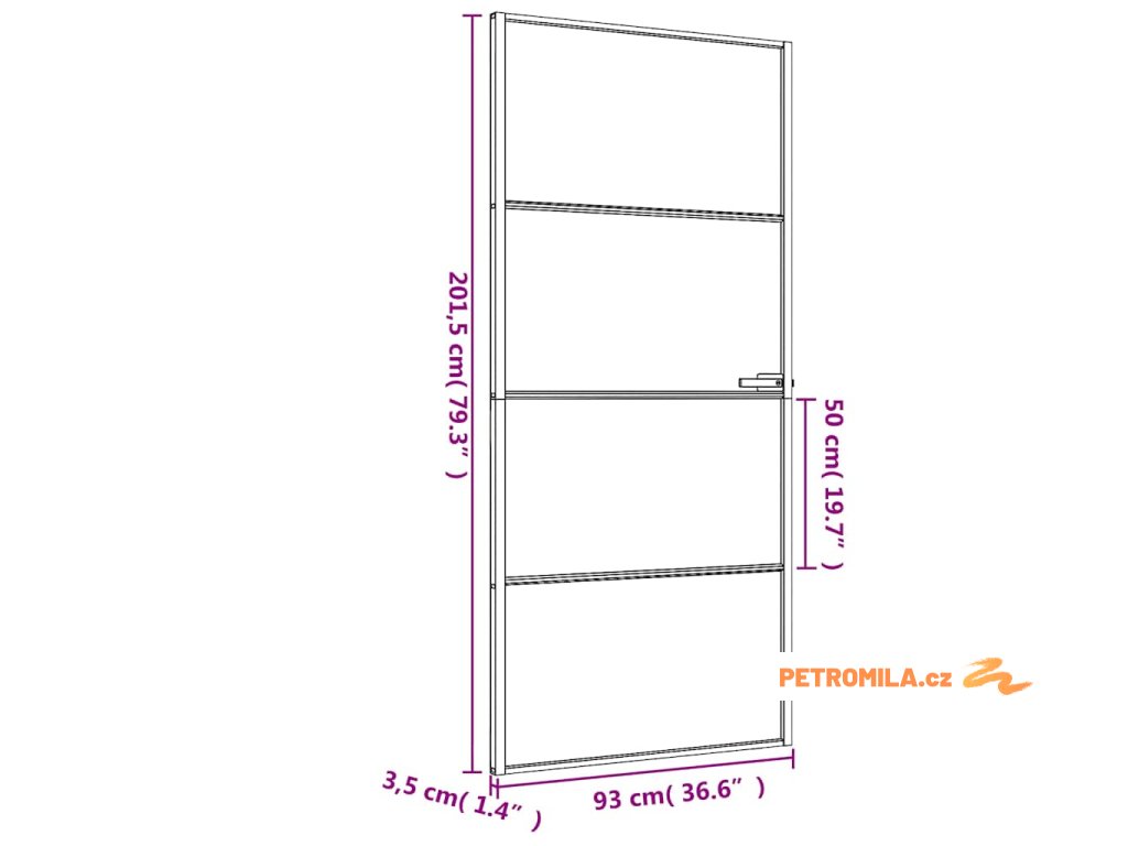 - Štíhlý design: Úzký hliníkový rám dodává interiérovým dveřím moderní a luxusní vzhled.