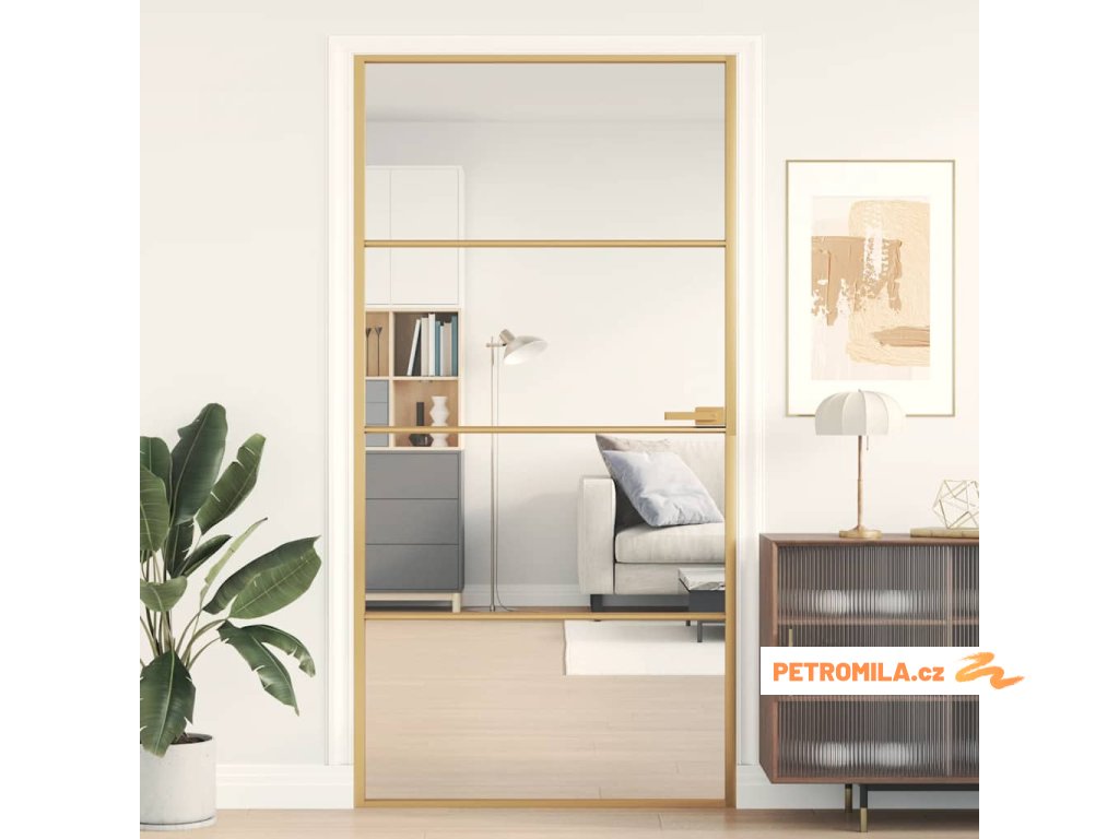 Interiérové dveře úzké zlaté 102,5x201,5 cm tvrzené sklo hliník