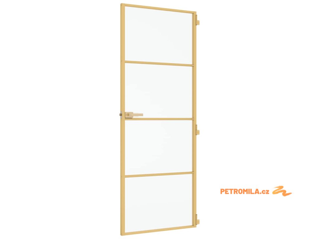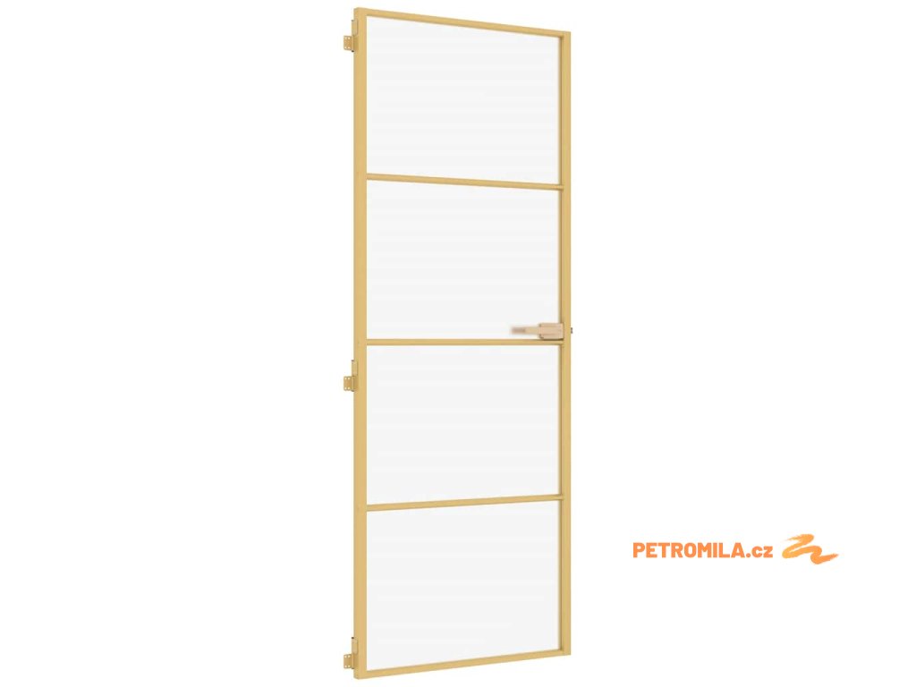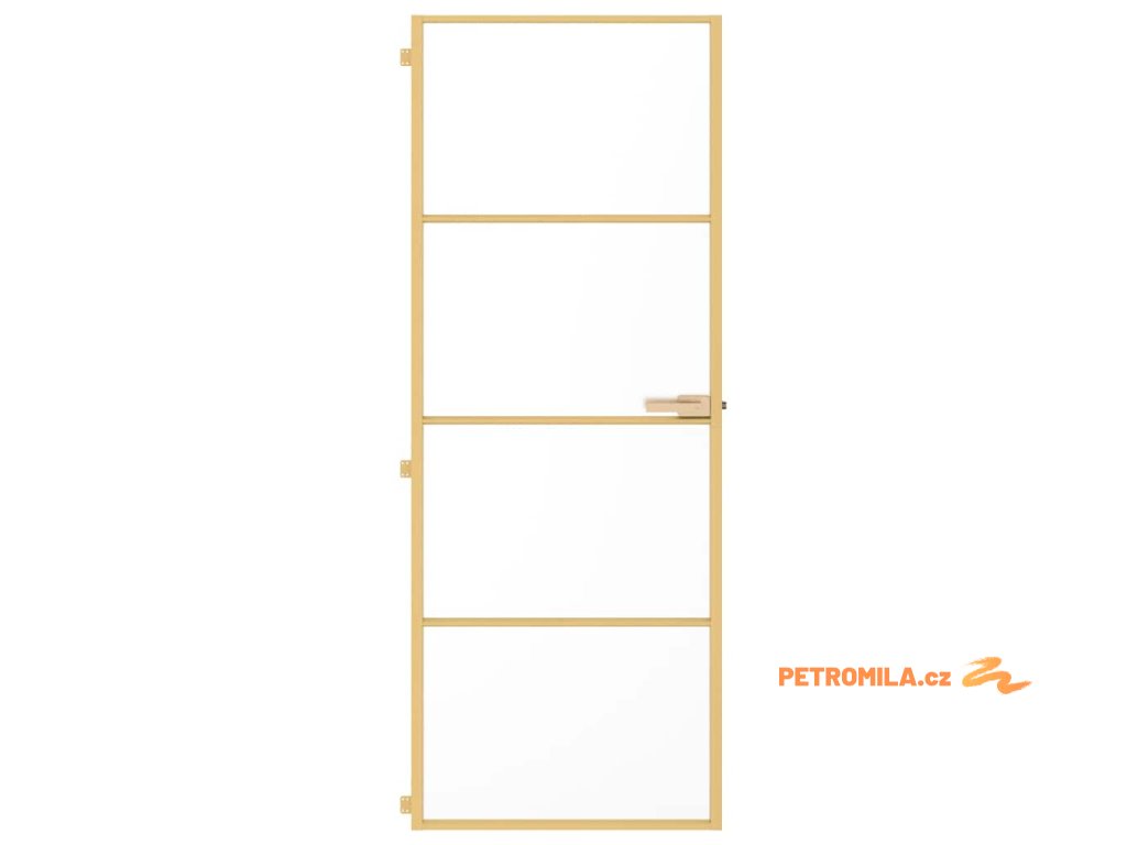 Interiérové dveře úzké zlaté 76x201,5 cm tvrzené sklo a hliník