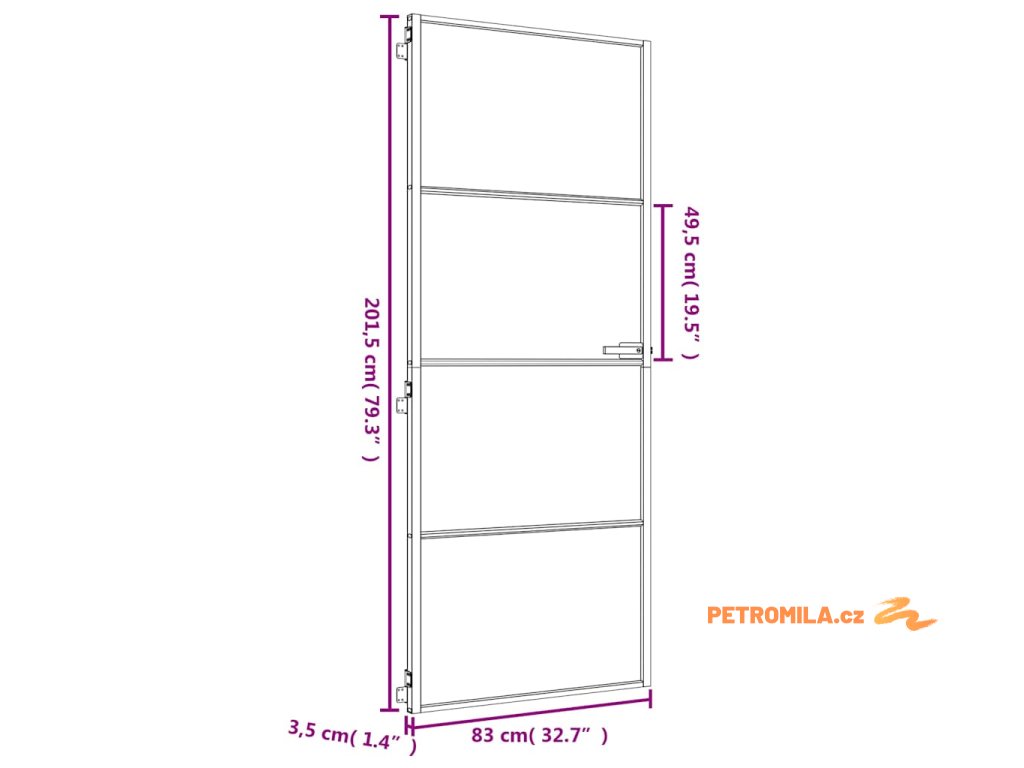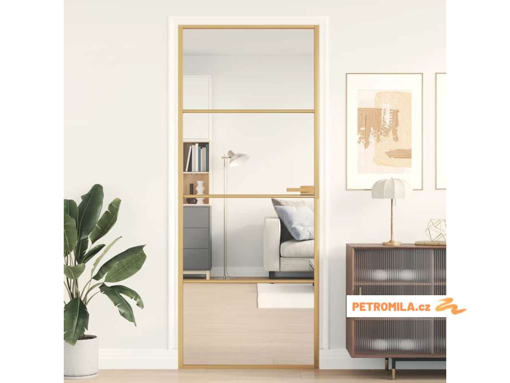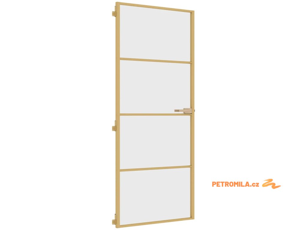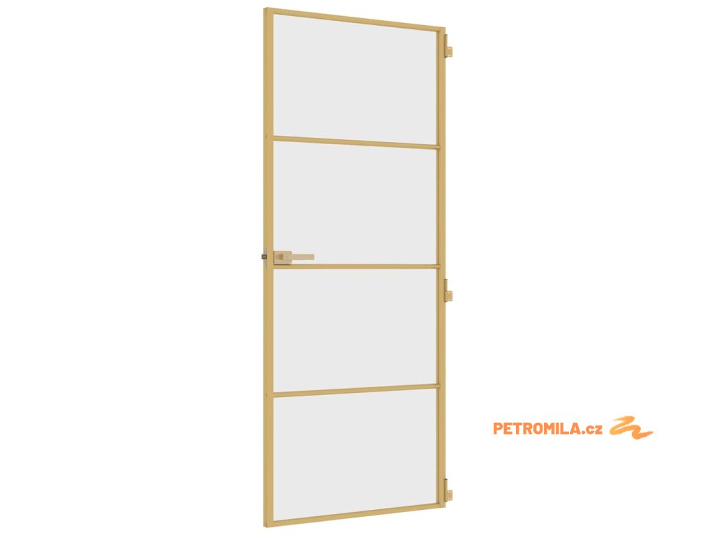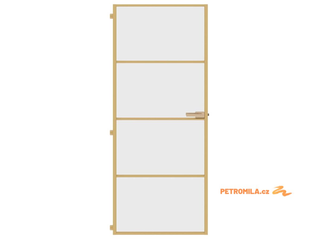Interiérové dveře úzké zlaté 83x201,5 cm tvrzené sklo a hliník