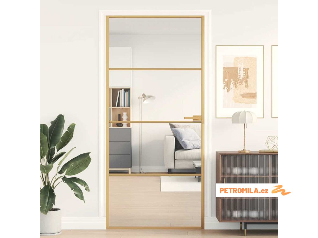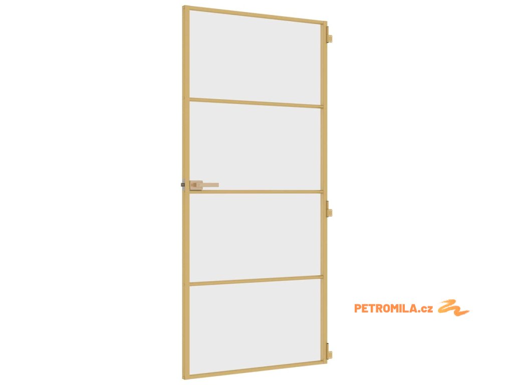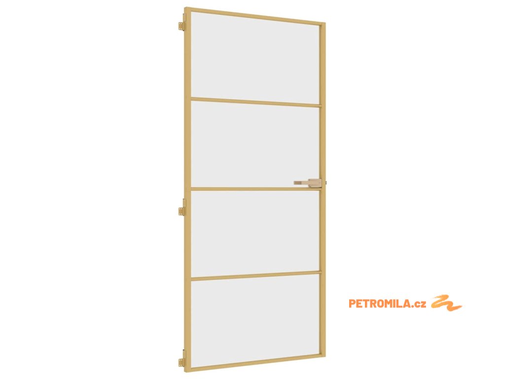 Interiérové dveře úzké zlaté 93x201,5 cm tvrzené sklo a hliník
