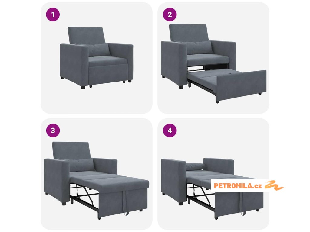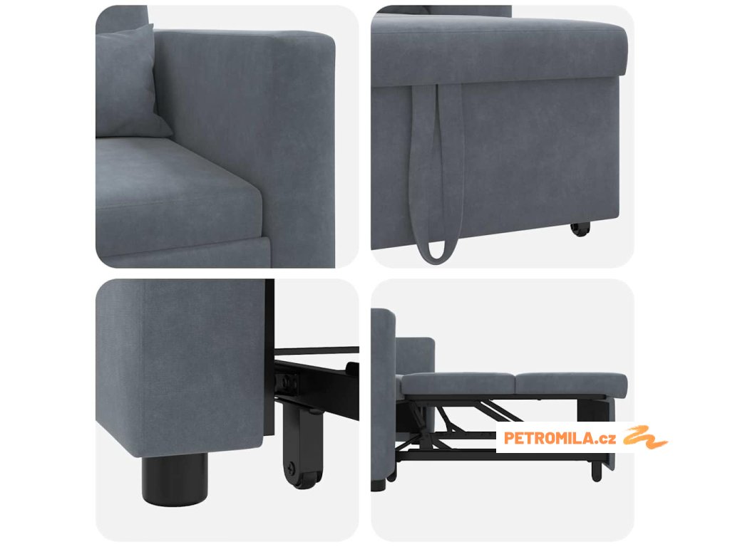 Tento 3-v-1 konvertibilní gauč spojuje všestrannost s pohodlím a moderním vzhledem, který se hodí do jakéhokoli obýváku. Nabízí sedadlo, křeslo a postel v jednom, a má čisté linie, které pasují do jakékoli dekorace. Pokrytý měkkým sametem, opravdu vypadá luxusně a zároveň skvěle sedí, ideální na pohodlné večery doma nebo když máte návštěvu.
