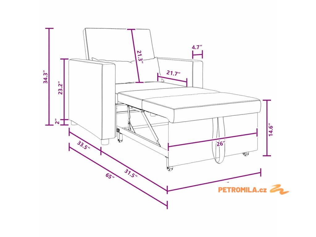 - Vícefukční použití: Tenhle 3-v-1 gauč se jednoduše přepíná mezi sedadlem, křeslem a postelí. Převedení je hladké a usnadňuje používání pro cokoli - od hostování po relaxaci.