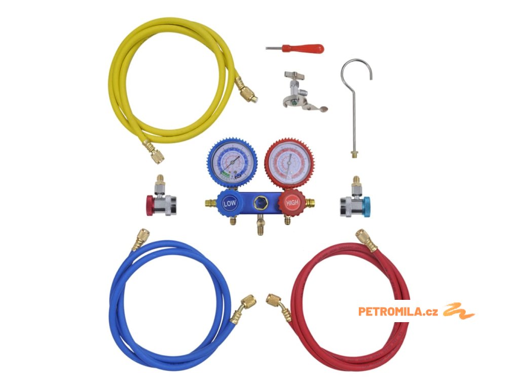 Dvoucestná sada na měření se uplatní při plnění a kontrole klimatizačních systémů, ukáže vám totiž údaje o tlaku v systému. Můžete ji použít na všechny automobilové klimatizace, ale i komerční a domácí klimatizační chladicí systémy. Hodnoty na barevně rozlišených měřidlech lze číst snadno, rychle a přehledně. Aby se nepoškodila, jsou zapuštěná v ochranném plášti. Pomocí vestavěného ocelového háčku je také bez námahy zavěsíte. Sada na měření má odolnou konstrukci a pro jednoduchou přepravu a uskladnění je uložená v přenosném pouzdře z foukaného plastu.