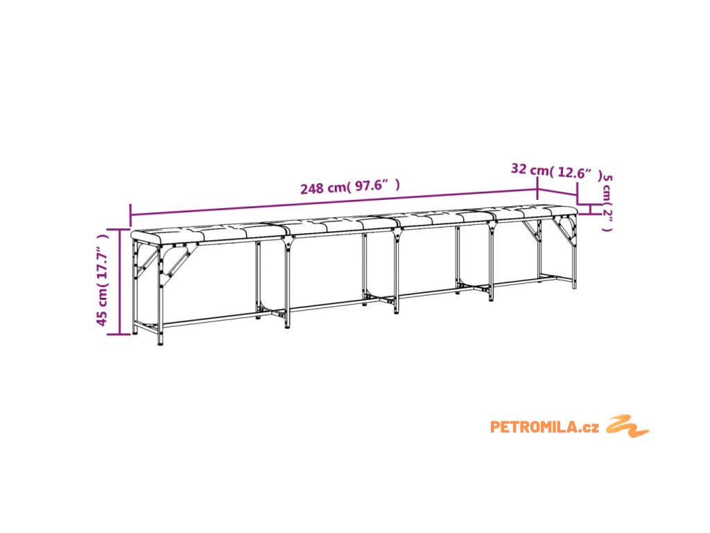 Jídelní lavice tmavě šedá 248 x 32 x 45 cm ocel a textil