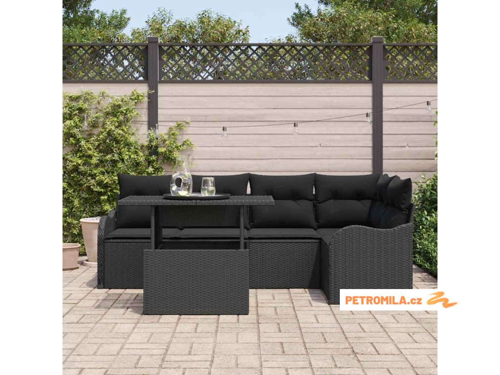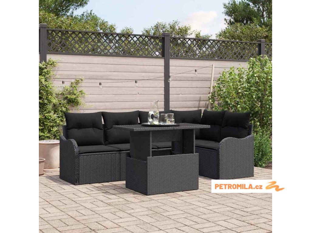 Jídelní souprava s polštářem 6 pcs Černá Poly ratan
