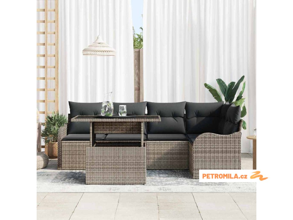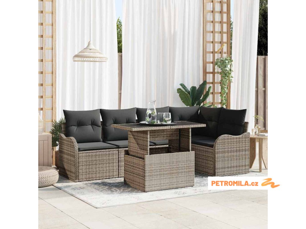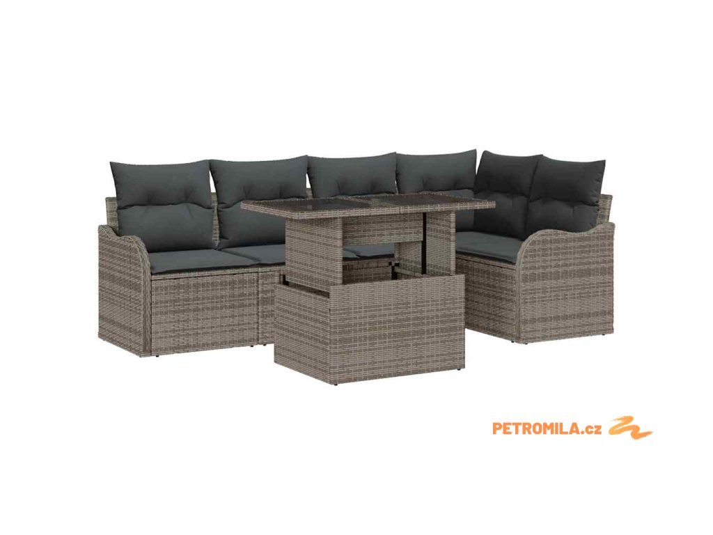 Jídelní souprava s polštářem 6 pcs Šedá Poly ratan