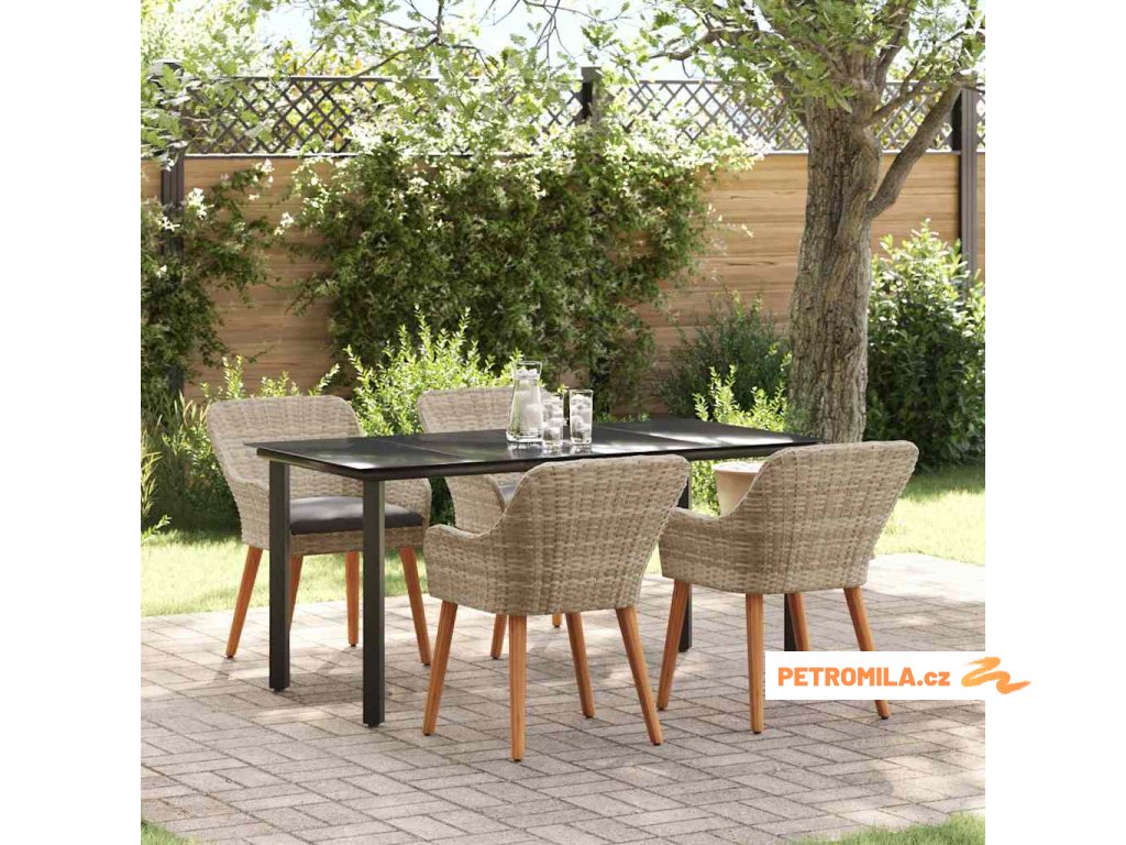 5dílný zahradní jídelní set s poduškami béžový polyratan