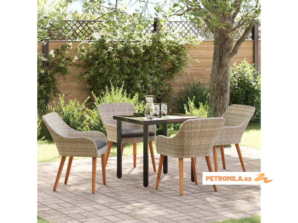 5dílný zahradní jídelní set s poduškami béžový polyratan