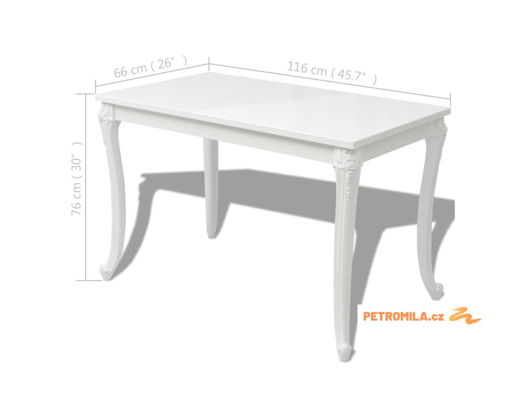 Jídelní stůl 116x66x76 cm vysoký lesk bílý