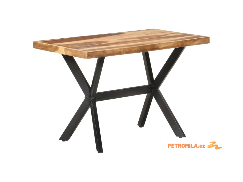 Jídelní stůl je zhotovený z masivní akácie a kaučukovníkového dřeva s medovou povrchovou úpravou. Stůl je celý ručně dělaný a každá fáze jeho výroby je prováděna s mimořádnou péčí, ať už se jedná o leštění, natírání anebo lakování. Ocelové nohy dotvářejí industriální vzhled a spolu s ocelovým křížovým rámem přispívají k robustní konstrukci.