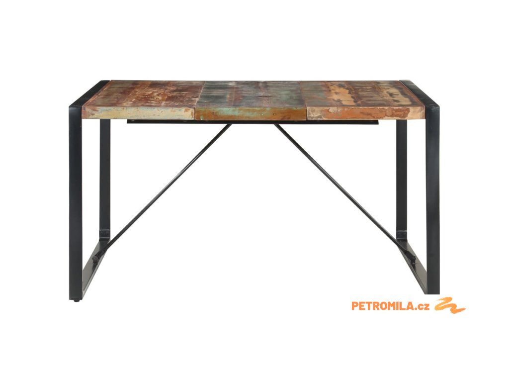 Tento jídelní stůl je ručně vyrobený z masivního recyklovaného dřeva. Recyklované dřevo pochází z trámů, podlah a podpěrných nosníků starých budov určených k demolici. Sestává tedy z různých druhů dřeva, jako jsou teak, tvrdé dřevo, tropické dřevo, mangovník apod. Recyklované dřevo tak nabývá vlastností všech těchto rozličných typů dřevin. Navíc je již zestárlé, ošlehané a vyschlé, takže se nesmršťuje ani neohýbá. Pevné, práškově lakované ocelové nohy přispívají ke stabilitě stolku.
