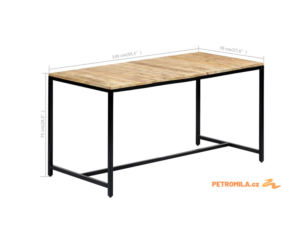 Jídelní stůl 140 x 70 x 75 cm masivní hrubé mangovníkové dřevo