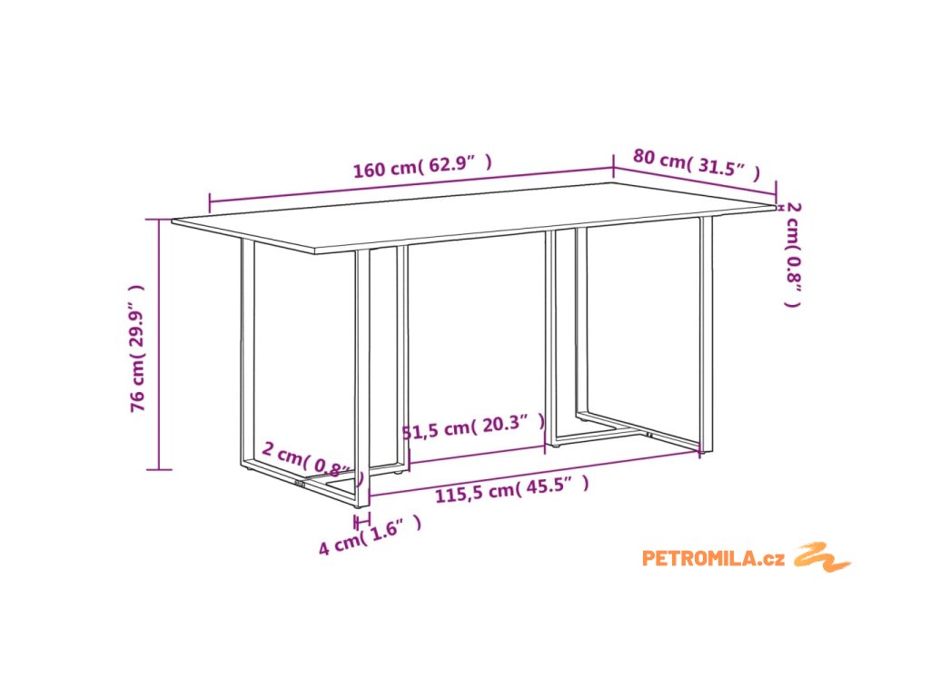 - Rozměry: 160 x 80 x 76 cm (D x Š x V)