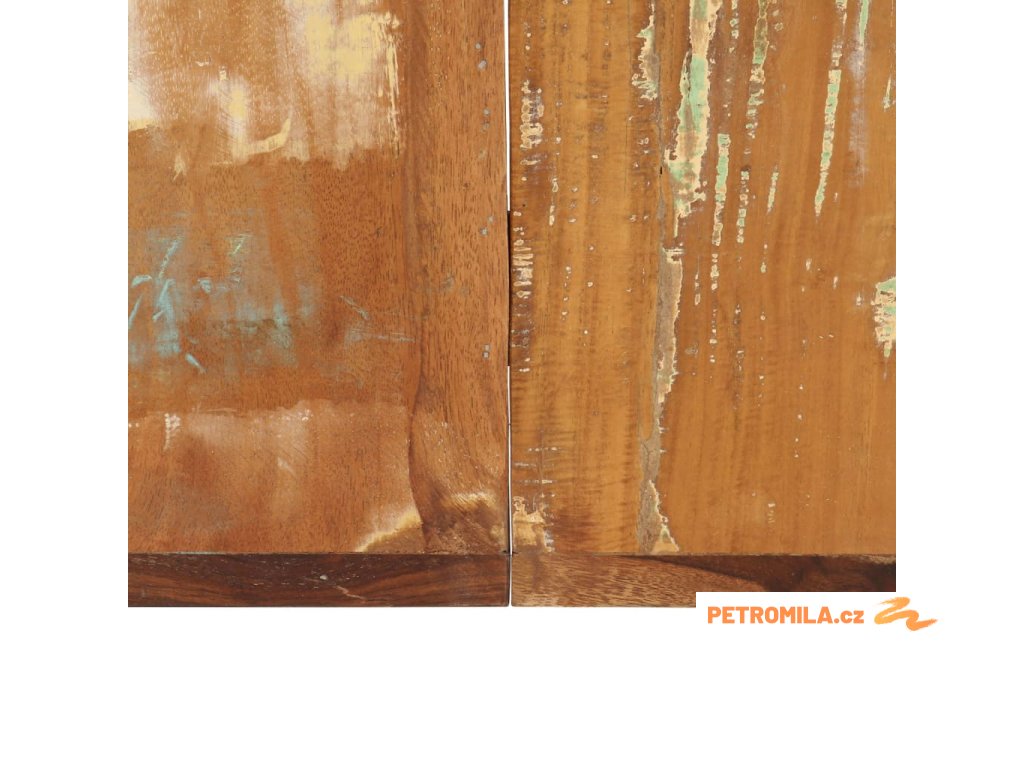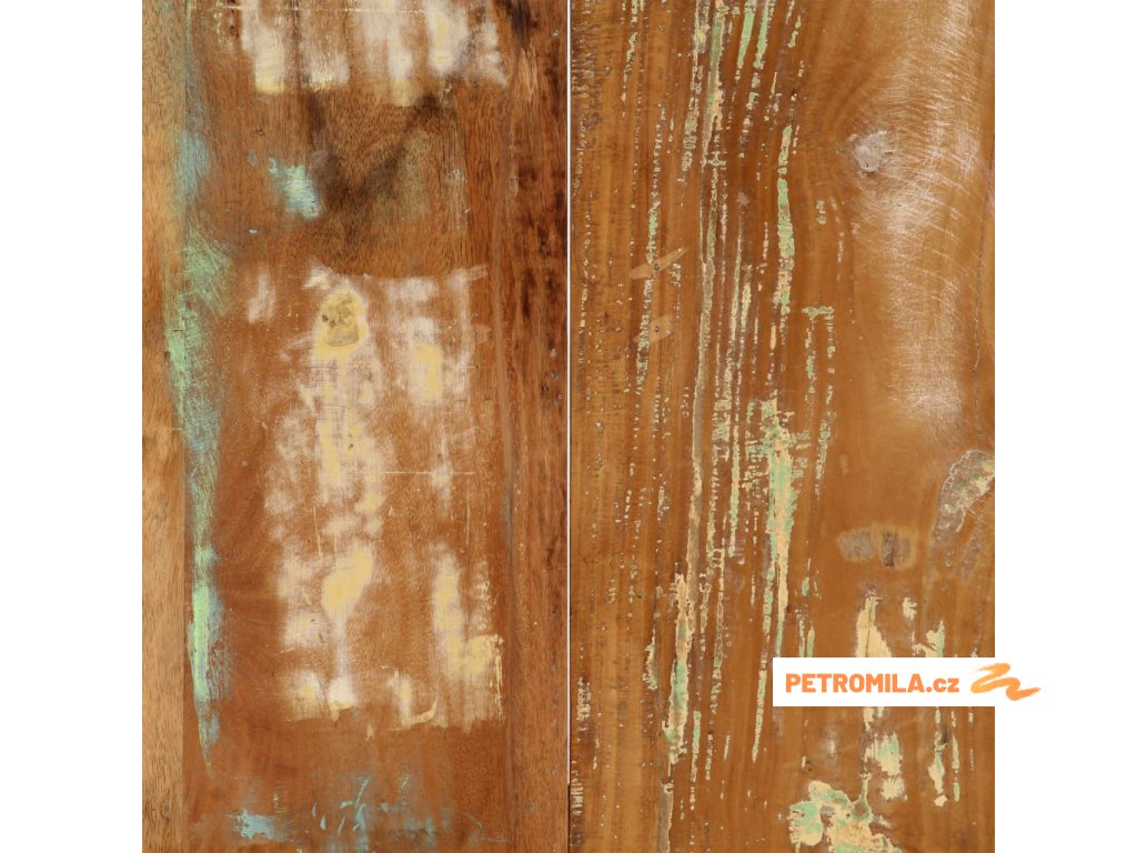 - Materiál: masivní recyklované dřevo a ocel s práškovým nástřikem